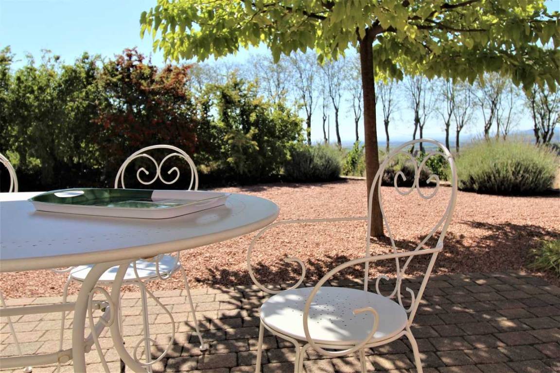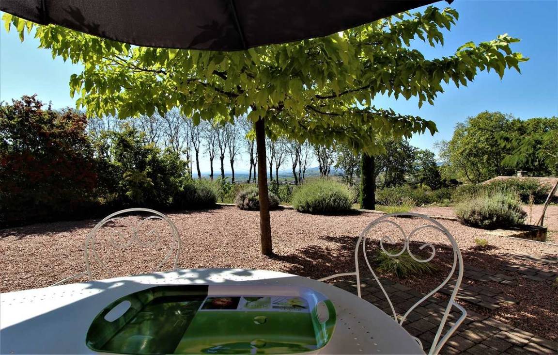 „Plenty of room for large extended families. Very comfortable 2 bathrooms plus 3 toilets. Lovely large kitchen with patio doors straight on to the terrace with stunning views overlooking Fleurie and beyond. Ideal location for touring the area.“