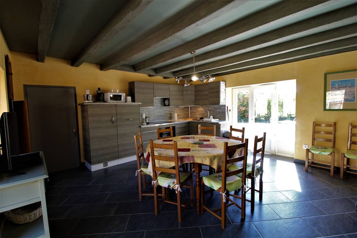 „Le : Gite très bien situé, avec un beau terrain. Le -: Les photos sont trompeuses, prises avec un grand angle. La salle semble grande et ce n'est pas le cas. L'espace détente est dans un coin de la salle et ne comporte que 2 fauteuils. Le gite ne dispose que de deux transats. Ces équipements ne sont pas prévus pour 8 à 10 personnes (capacité annoncée du gite).“