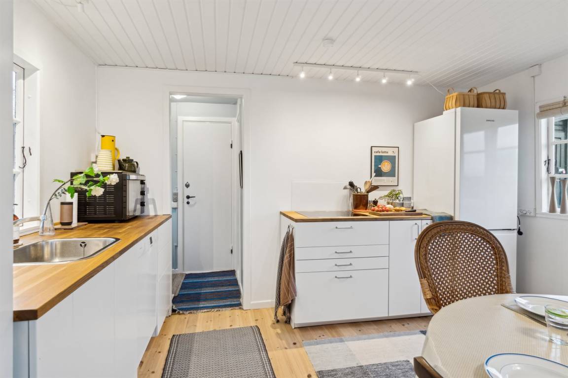 Das Haus ist hell und sommerlich eingerichtet, mit einer modernen Küche, die offen mit dem Essbereich und dem Wohnzimmer verbunden ist. Von hier hast du Zugang zur Süd- und Westterrasse, auf der du die Sonne und den schönen Sonnenuntergang genießen kannst.