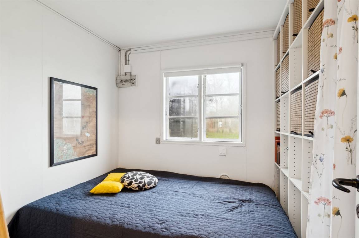 Es gibt ein Schlafzimmer mit Doppelbett und eine Alkove mit Doppelbett im Wohnbereich. Das Badezimmer ist mit einer Duschnische, Fußbodenheizung und einer Waschmaschine ausgestattet.