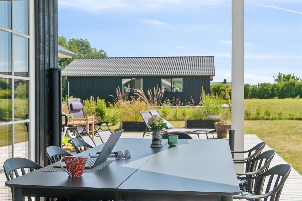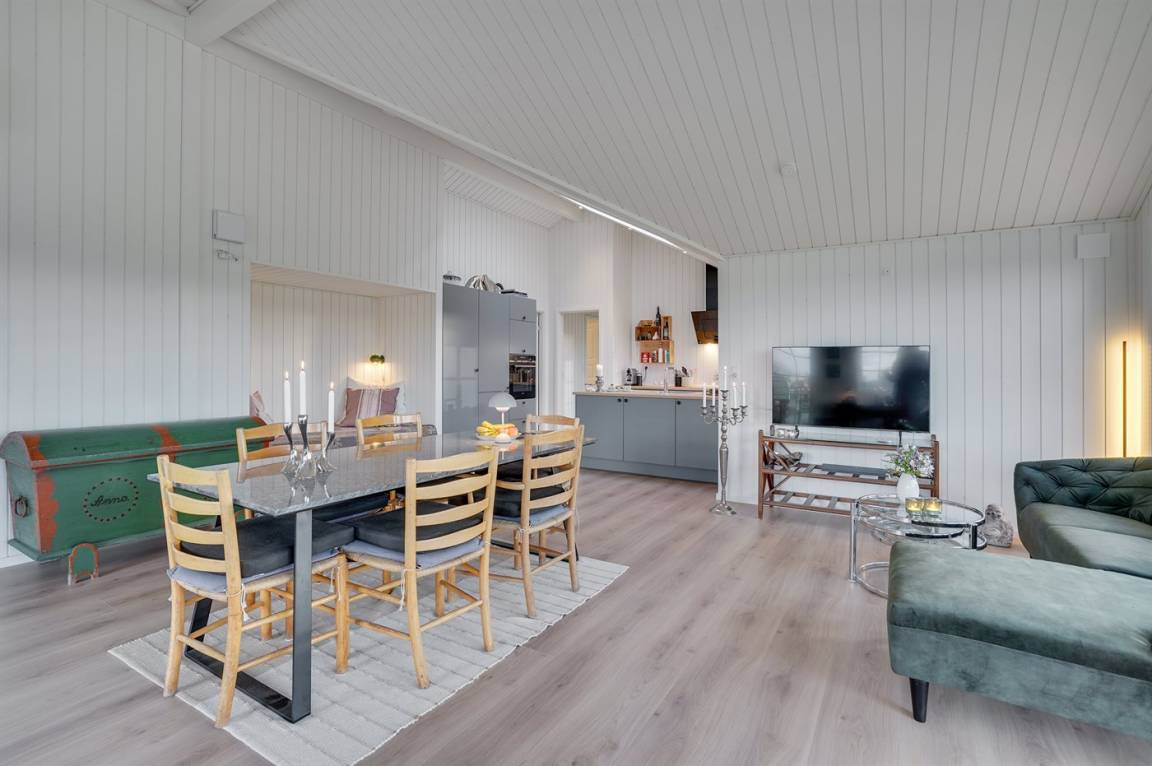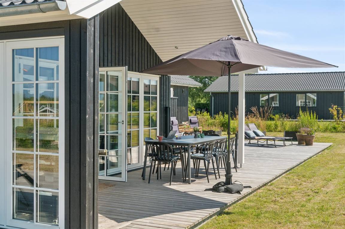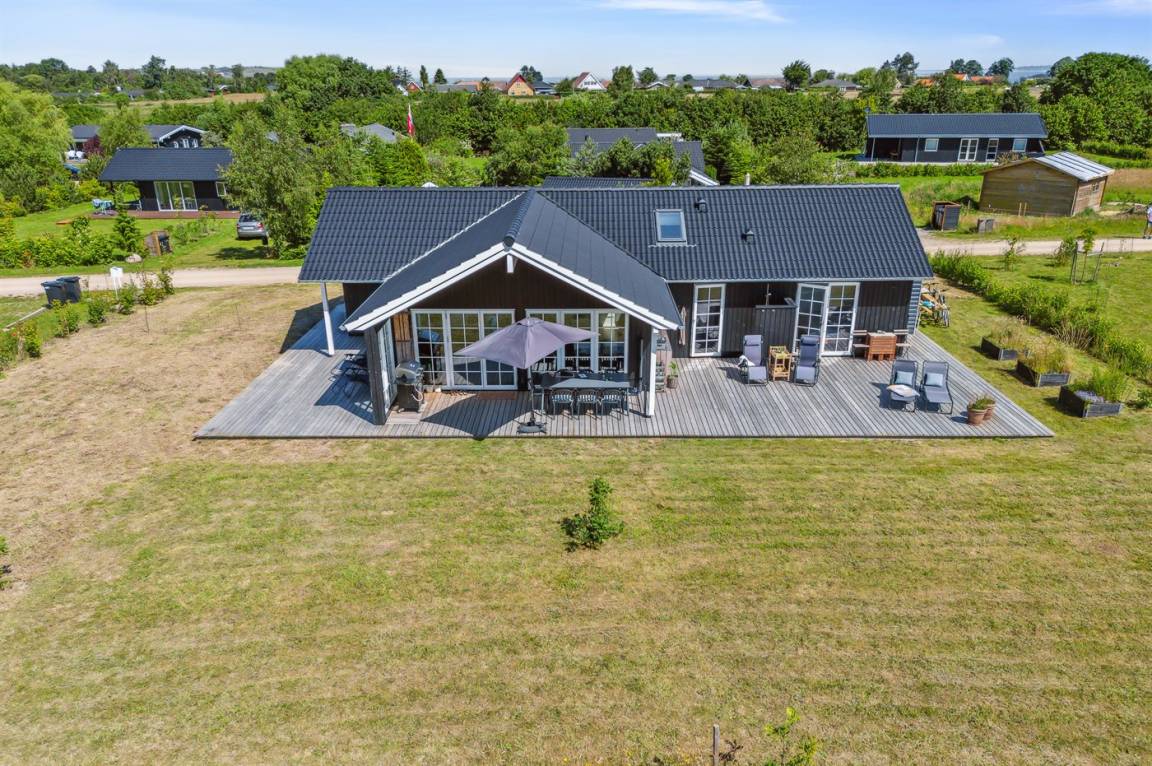 Dieses neue Qualitätsferienhaus von 2022 liegt in einer neuen Siedlung aus schönen neuen Ferienhäusern und ist nur 550 m vom Meer entfernt. Das Haus ist von einer 130 m² großen Holzterrasse umgeben, von der ein großer Teil überdacht ist. Es gibt eine Außenküche und Außenduschen, die das Erlebnis von Urlaub unter freiem Himmel vervollständigen.