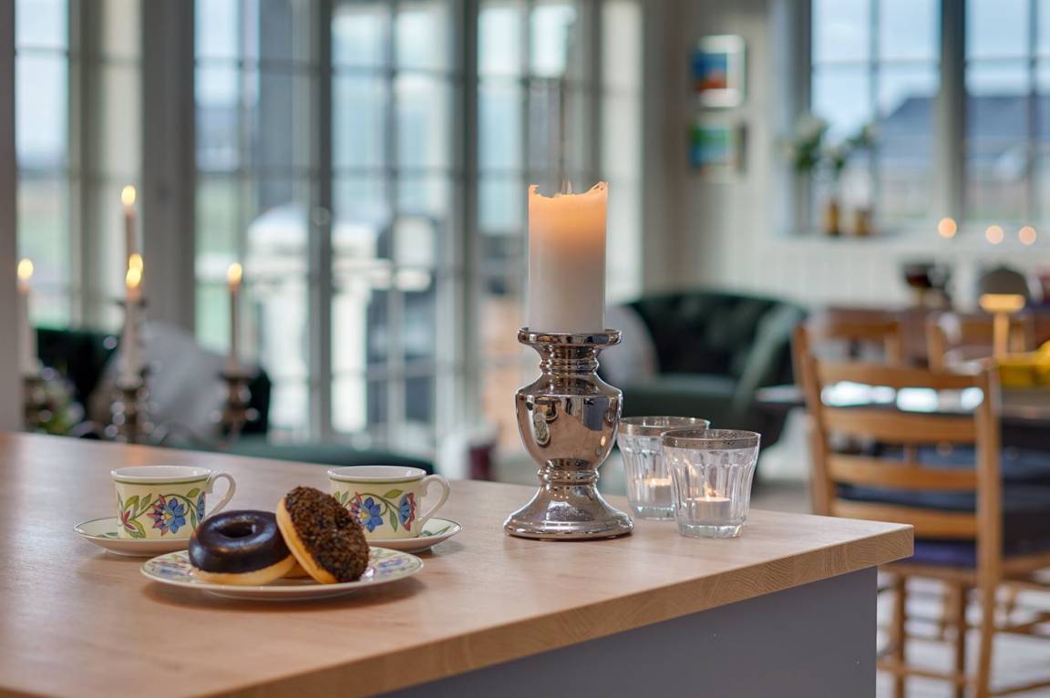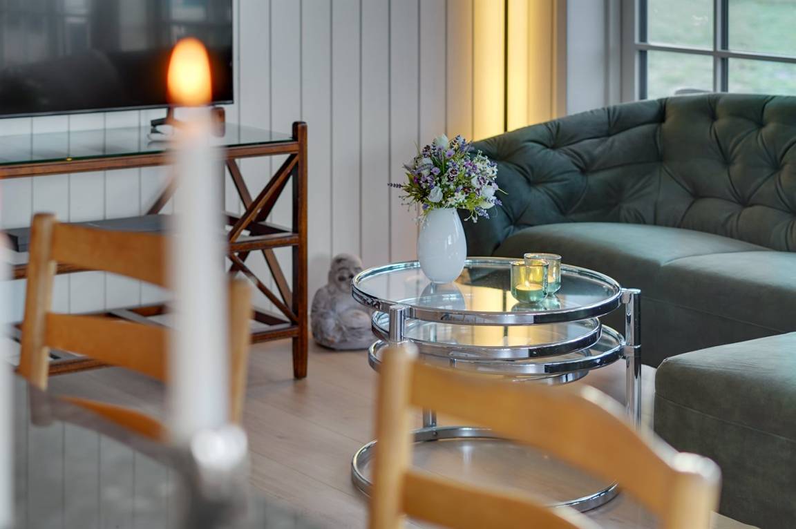 Die Einrichtung des Hauses ist durchgehend hell, geschmackvoll und hochwertig, was die hohe Qualität des Hauses unterstreicht. Durch die großen Fensterfronten und die hohen Decken ist das Haus hell, geräumig und luftig.