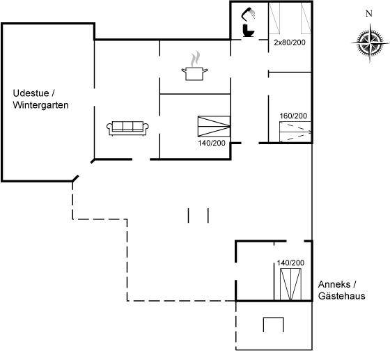 SchlafverhältnisseDie Schlafplätze verteilen sich auf 4 Schlafräume. 4 Schlafplätze in Doppelbetten. 2 Schlafplätze in Einzelbetten. 2 Schlafplätze auf einer Doppelschlafcouch. 2 von diesen Schlafplätzen befinden sich im Gästehaus.