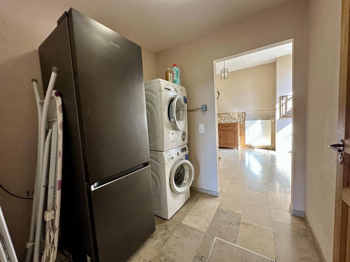 Layout : Parterre: Eingang, Aufenthaltsraum mit TV, Ofen(Holz), DVD-Player , Esszimmer mit Esstisch(9 Personen) , Küche mit Kochplatte(4 Kochplatten, Ceranfeld), Wasserkocher, Toaster, Kaffeemaschine(Filter, senseo pads), Backofen, Mikrowelle, Geschirrspüler, Kühlschrank, Tiefkühlschrank, Zitruspresse, Mixer , Schlafzimmer mit Einzelbett(Bettdecke, 90 x 200 cm), Waschbecken , Toilette, Waschraum mit Wäschetrockner, Waschmaschine, Staubsauger, Bügelbrett, Bügeleisen