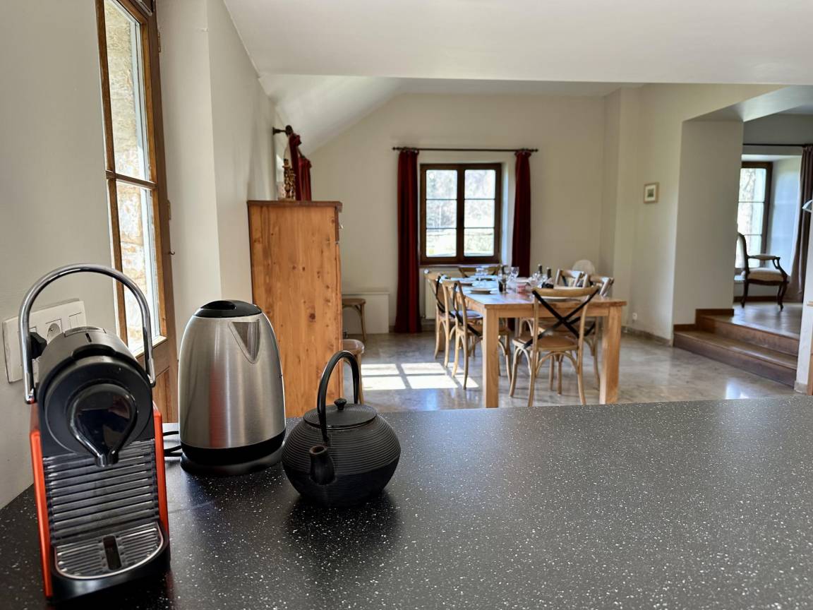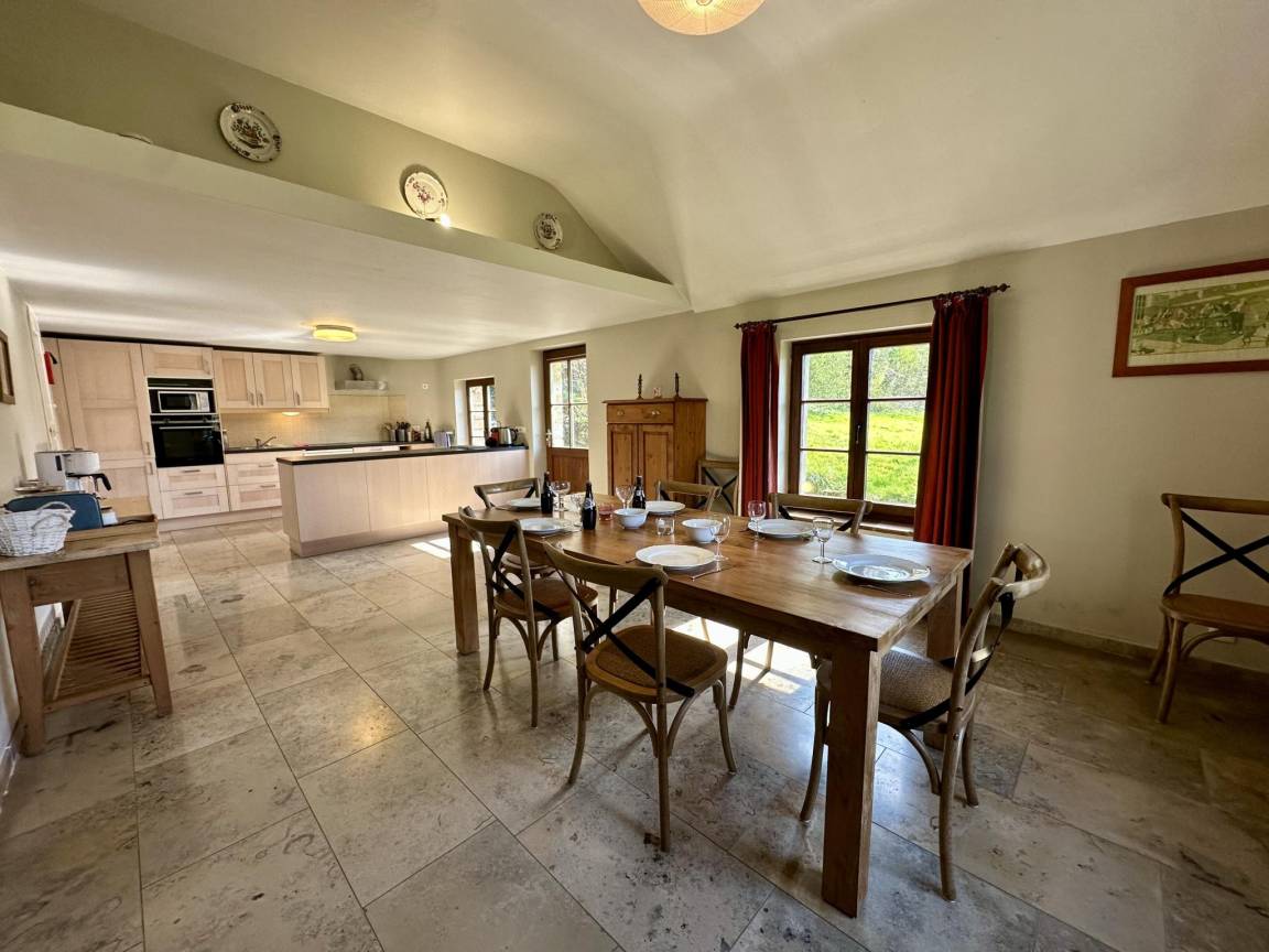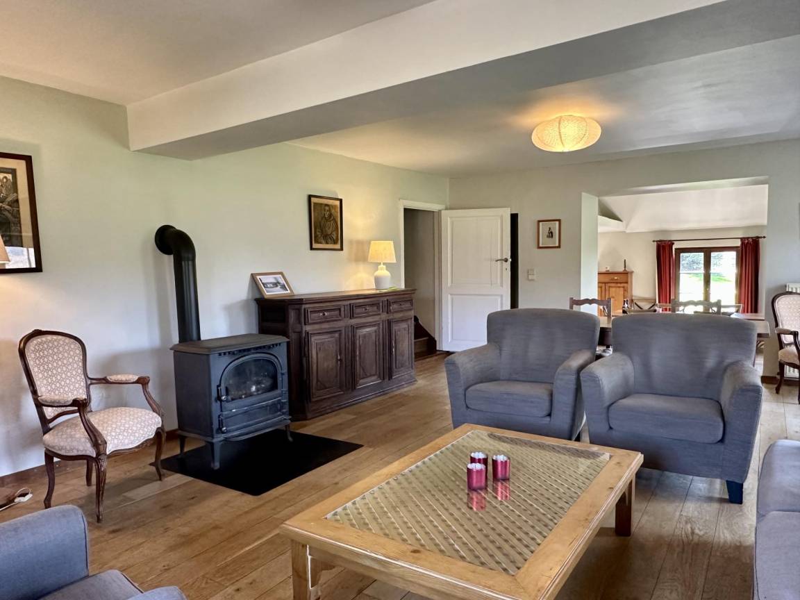 Hausbeschreibung : Dieses Ferienhaus wurde 2018 renoviert und neu eingerichtet, um moderne Einrichtungen zu bieten, wobei der ursprüngliche Charakter des Gebäudes in Bezug auf die Materialien und die allgemeine Atmosphäre erhalten blieb. Eine ideale Unterkunft für einen Familienurlaub! Es hat ein schönes Wohnzimmer mit Holzofen und bequemen Sesseln, ein Esszimmer mit voll ausgestatteter offener Küche, 3 schöne Schlafzimmer im ersten Stock, 2 Bäder und eine schöne Terrasse mit Blick auf das Anwesen