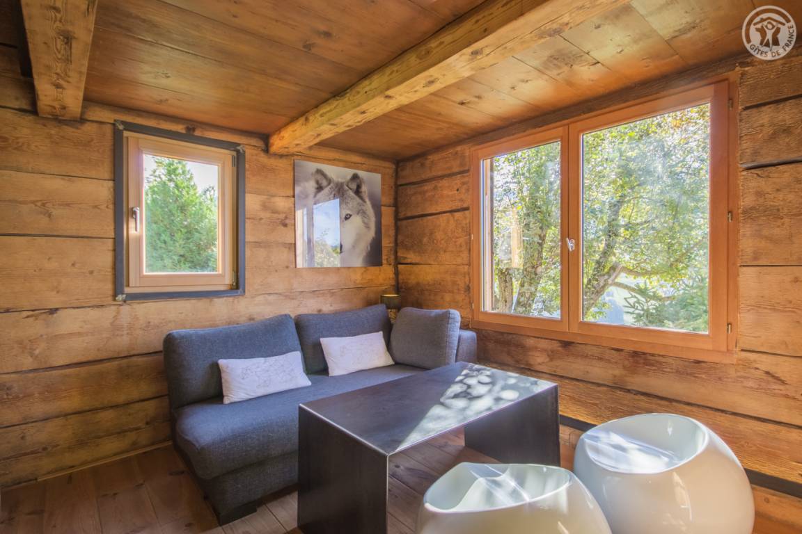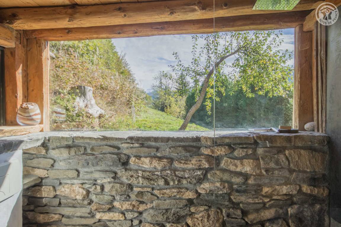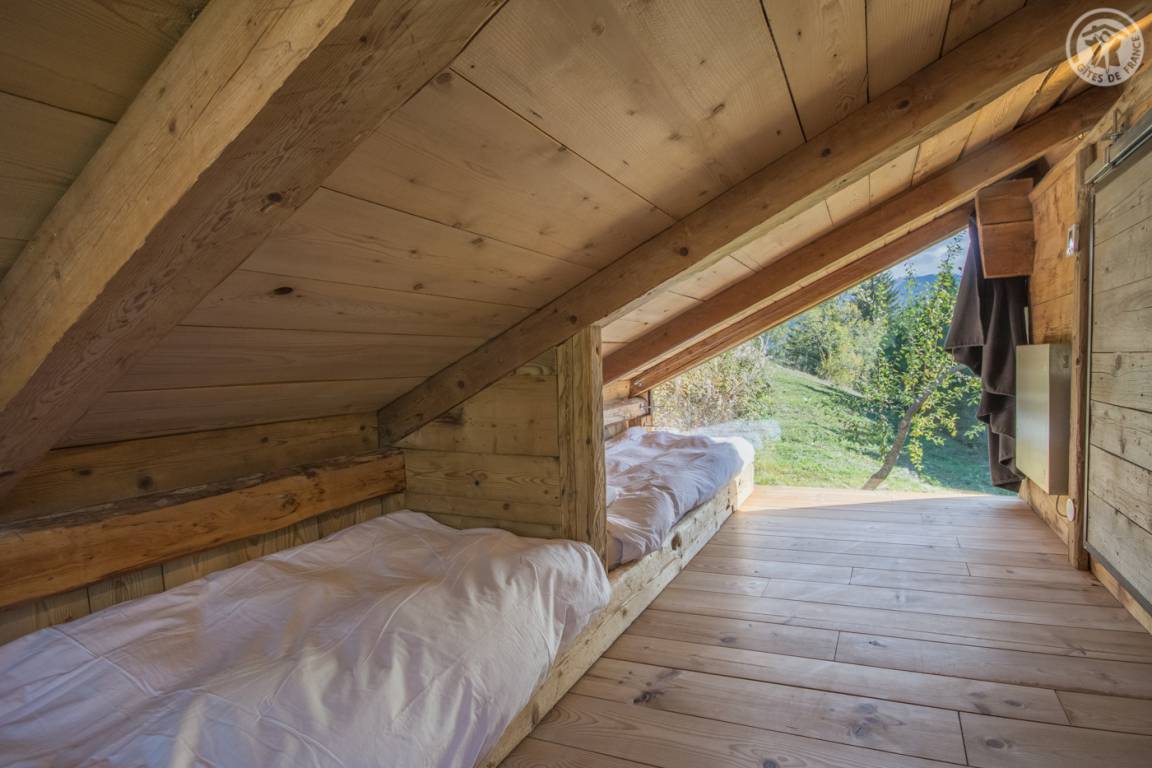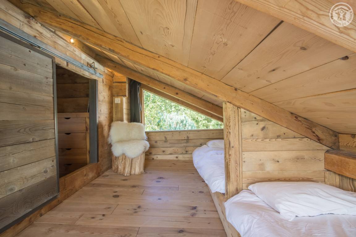 „Aménagement esthétique, mais inconfortable et inadapté, notamment la table et sièges pour les repas. Dernière marche de l'escalier en métal, beaucoup trop haute, absence de rembarde. La seconde chambre, mansardée, est compliquée pour des adultes car très basse de plafond (en biais) et poutres. On se cogne souvent. Un congélateur est annoncé sur la liste des équipement, or il n'y a ni congélateur ni freezer dans le réfrigérateur. Insuffisamment débrousaillé en extérieur. De la terrasse en herbe, vue magnifique sur le Mont Blanc et départs de randonnées sur place ou très proches.“