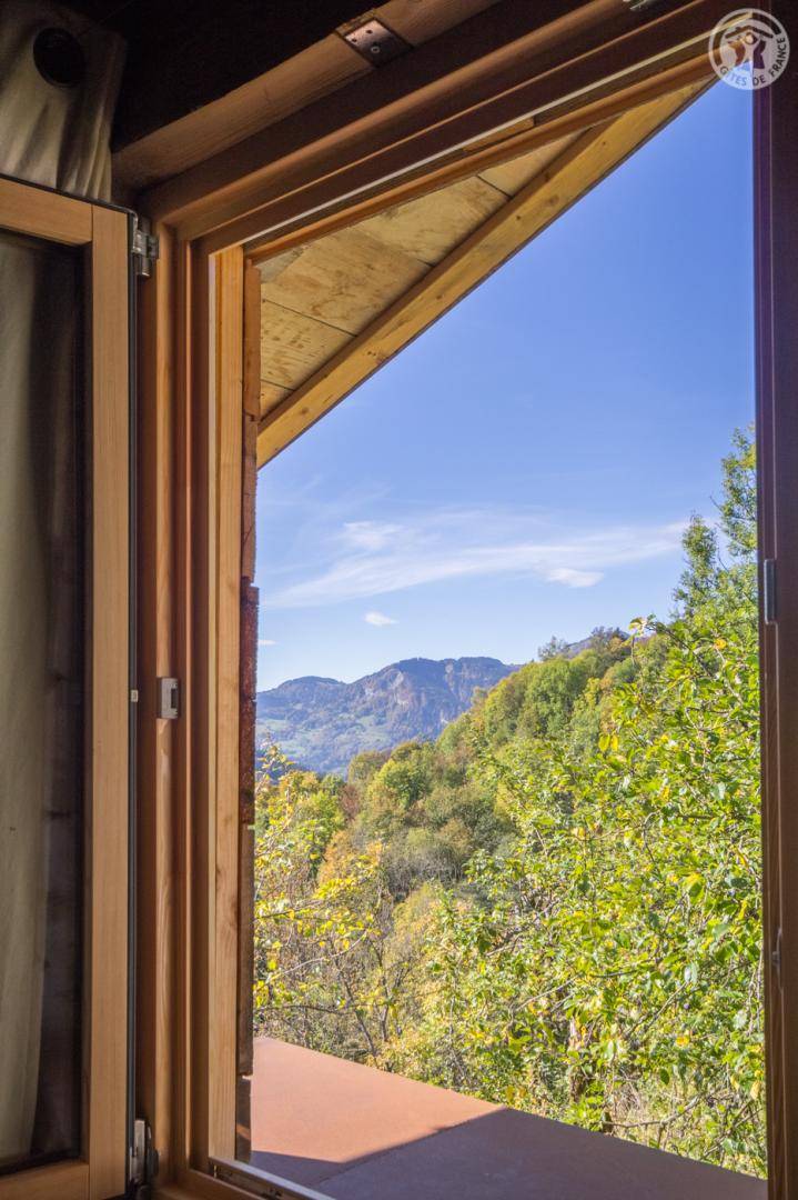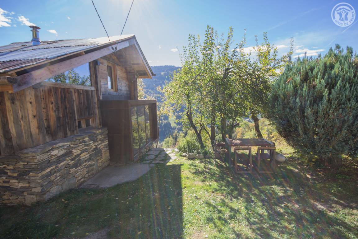 Alphütte (Zufahrt im Sommer über einen 250 m langen Schotterweg, der für Fahrzeuge mit angepasstem Auto geeignet ist - im Winter Zugang zu Fuß oder mit Schneeschuhen). Erdgeschoss: Veranda-Eingangshalle, Wohnzimmer-Küchenbereich, WiFi-Verbindung, Bluetooth-Lautsprecher, Badezimmer mit WC (ebenerdige Dusche). Obergeschoss: 1 Schlafzimmer im Zwischengeschoss (1 Doppelbett 140 x 190 cm) und ein Schlafzimmer mit einer Höhe von weniger als 1,80 m (2 Einzelbetten 80 x 190 cm). Elektrischer Schuhtrockner. Bettwäsche und Haushaltswäsche inklusive. Betten bei Ankunft bezogen. Rasenterrasse. Großes Grundstück mit Gartenmöbeln und Grill. Herrlicher Panoramablick!