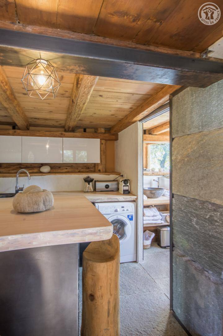 „Reculé mais pas trop, juste ce qu'il faut pour passer du temps au calme en famille. Le mazot est décoré avec beaucoup de goût (je piquerai quelques idées) et reste très fonctionnel malgré sa taille. Pour l'aménagement extérieur c'est également parfait en plus de la vue magnifique. Nous sommes allés avec notre chien et il avait de l'espace suffisamment sécurisé pour que nous n'ayons pas a le surveiller en permanence. Le petit plus est la proximité de la petite "cascade" ou les enfants ont passé énormément de temps. Bref, nous avons une super semaine.“