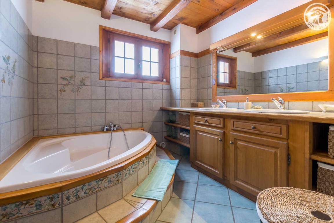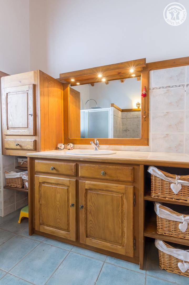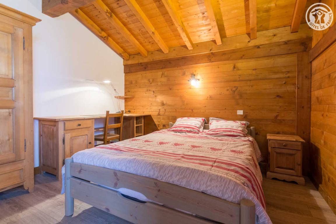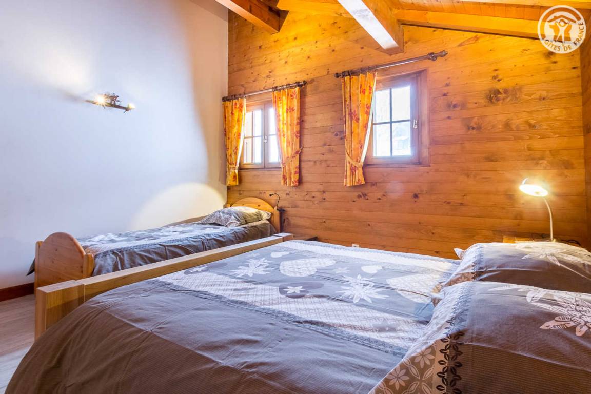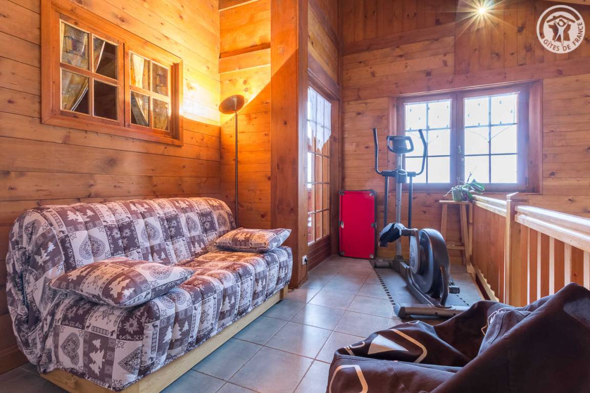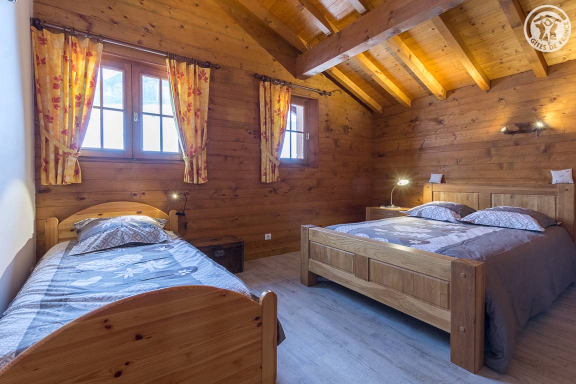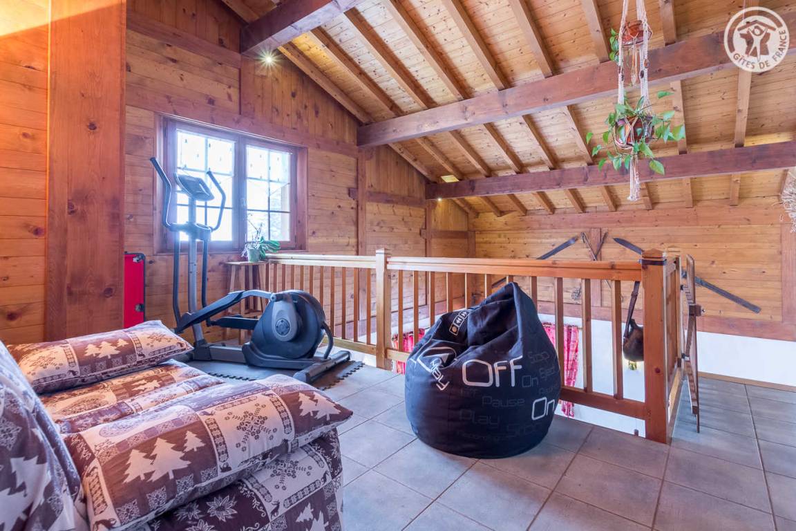 Gite in einem Chalet mit einem anderen Gite (im Erdgeschoss). Im 1. und 2. Stock. Unabhängiger Eingang über Außentreppe. 1. Stock: Terrasse, Wohnküche, 1 Schlafzimmer (1 Doppelbett 140x190 cm), 1 Badezimmer (Whirlpool), WC. 2. Stock: Mezzanine mit Rapido Schlafsofa für 2 Personen (140x190 cm) und Ellipsentrainer, 3 Schlafzimmer (1 Doppelbett 140x190 cm / 1 Doppelbett 140x190 cm / 1 Doppelbett 140x190 cm und 2 ausziehbare Betten in 90x190 cm) , Badezimmer (Dusche), WC. Garage im Erdgeschoss (2 Plätze), Waschküche mit Waschmaschine und Trockner (gemeinsam für beide Ferienhäuser). Skischränke und Schuhtrockner.