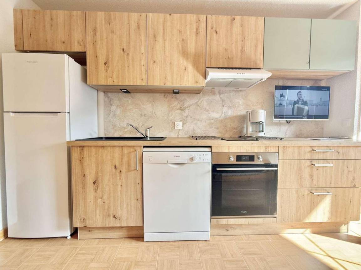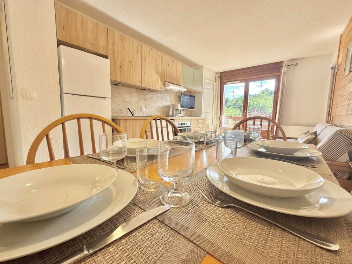 Fläche von ungefähr 37 m². 2te Etage. Orientierung : Nord-Ost. Blick berg. Wohnzimmer mit Ausziehschlafcouch für 2 Personen (90*190*2), TV. kleines zimmer mit Doppelbett (140). kleines zimmer mit 2 Stockbetten. mit Wasserkocher, Kaffeemaschine (filtre), Toaster, Waschmaschine, Geschirrspülmaschine, Mikrowellenherd, elektronische Herdplatten. Badezimmer. separates WC. Balkon. Die oberen Betten sind nicht für Kinder unter 6 Jahren geeignet.