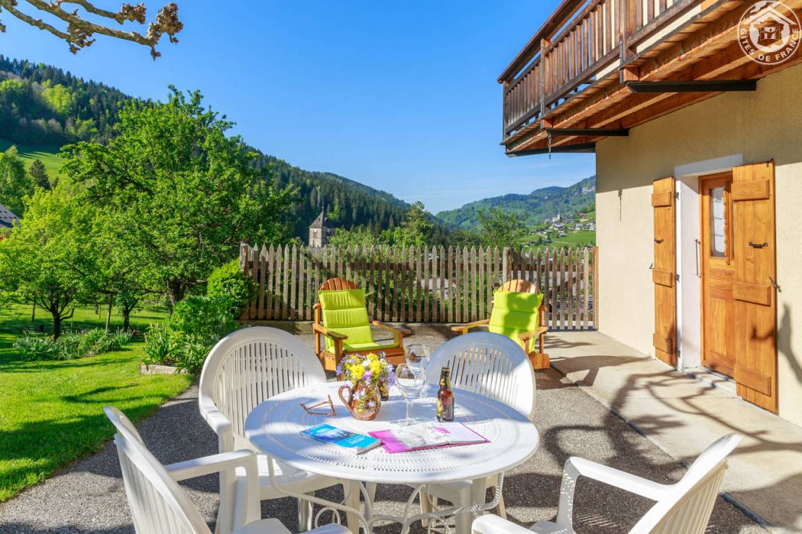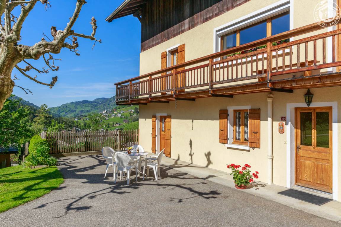 „Excellence de l'accueil de Monsieur Dos Santos, aimable et attentionné (un bon vin de Savoie frais et gouleyant mis au frigo à l'attention du locataire arrivant).Charme montagnard de la décoration. Magnifique domaine: Pelouses à perte de vue, massifs de fleurs colorées et vue dominante sur l'ensemble de la vallée. La beauté du Val d'Arly avec son paysage de montagne, ses cols et ses torrents au fond de gorges étroites, sans oublier sa charcuterie variée et ses fromages de bonne tenue.“