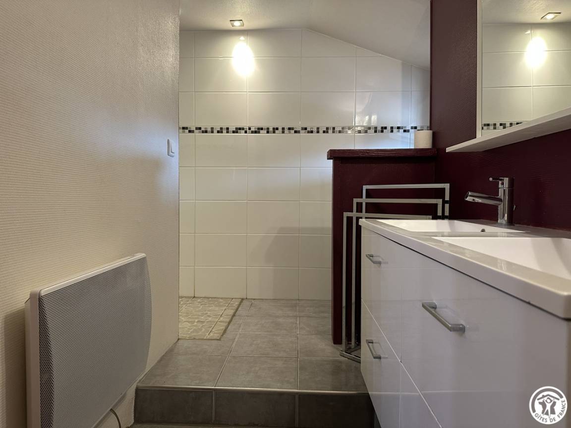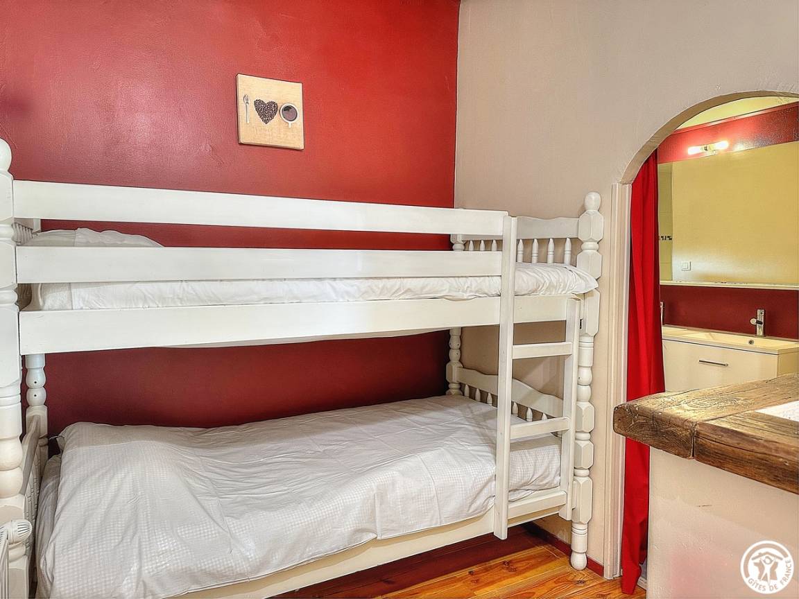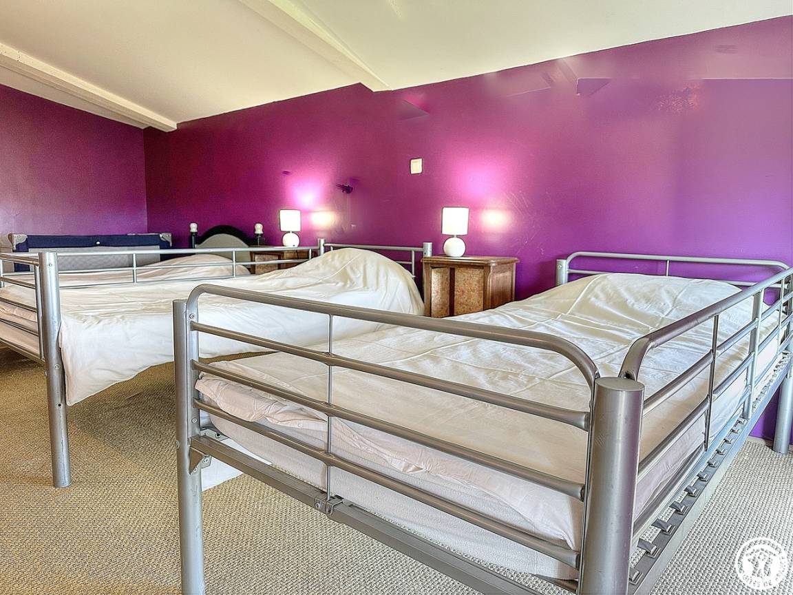 Dieses Haus auf zwei Ebenen grenzt an die Eigentümer, ein Studio (2 Personen) und eine ganzjährige Vermietung. Drei Räume ; ein Zimmer für 4 Personen mit einem 140-Bett und zwei 90-Betten (Etagenbett), mit eigenem Duschbad-WC im Schlafzimmer. Das Zimmer für 3 Personen mit 3 Einzelbetten in 90 hat auch ein "offenes" Badezimmer mit separatem WC. Das dritte Schlafzimmer ist über das 3-Personen-Schlafzimmer zugänglich und verfügt über ein Doppelbett von 140. Parkplatz auf dem Grundstück.