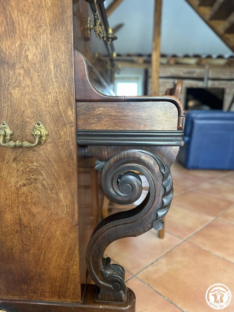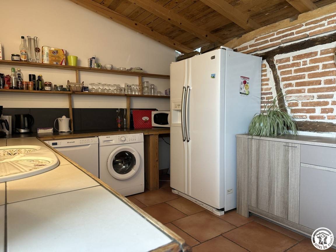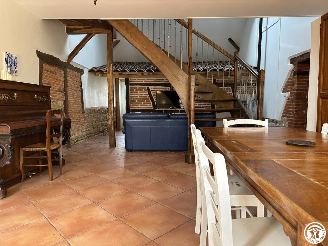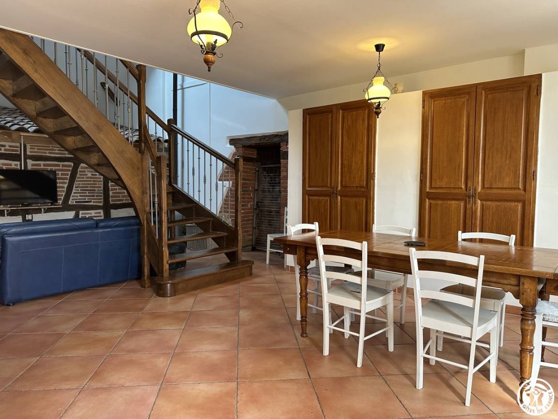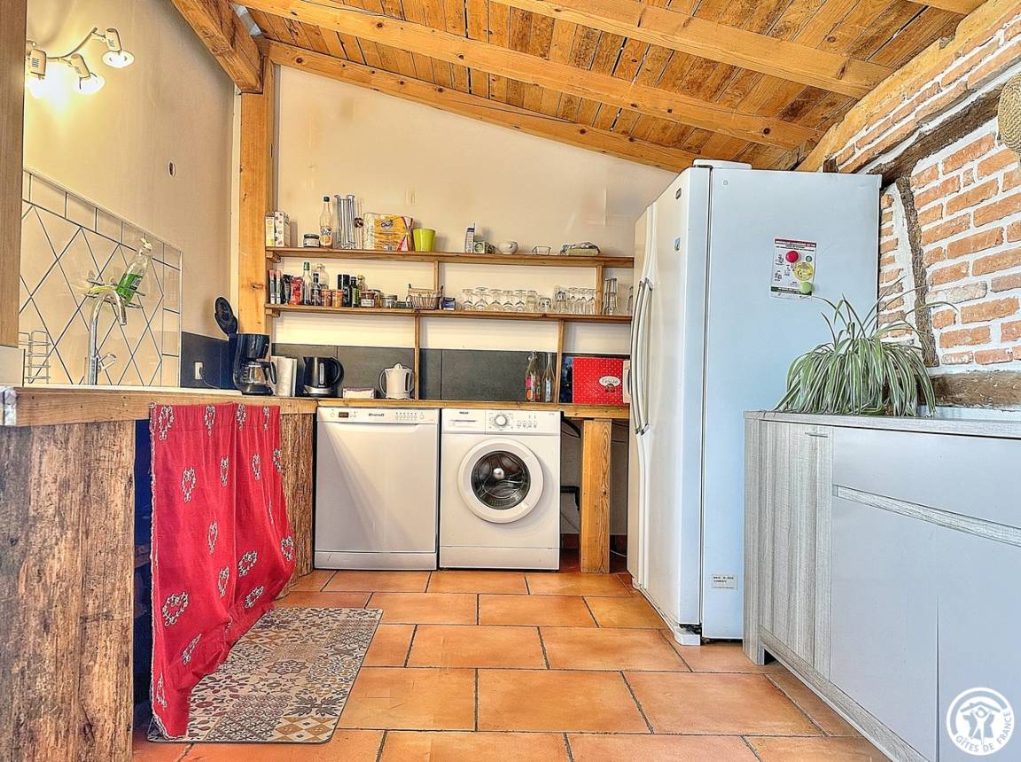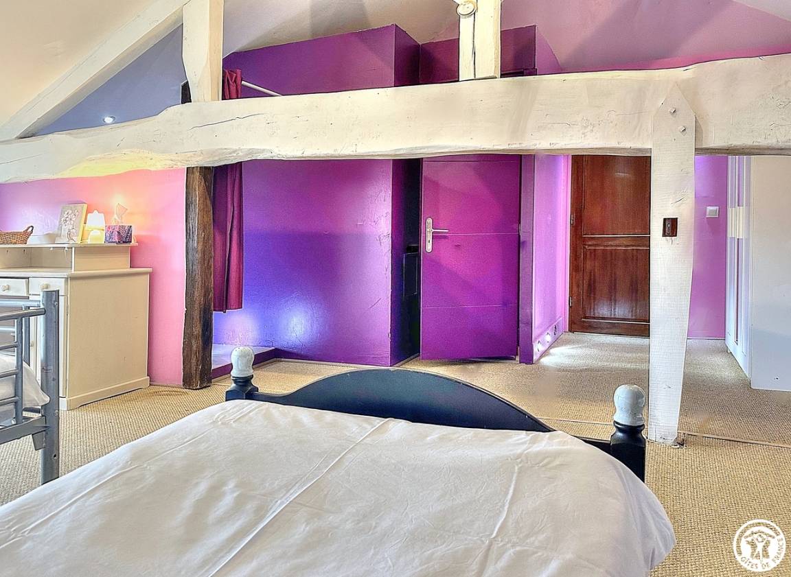 Mit seiner überdachten Innenterrasse, seinem Wohnzimmer und Wohnzimmer offenbart es den Charme der Balken und Ziegel. Du bist kalt ? Nutzen Sie die Wärme des Pelletofens und entspannen Sie sich in diesem Ruhebereich, nehmen Sie sich die Zeit zum Nichtstun. In der Verlängerung dieses Wohnzimmers befindet sich eine halboffene und funktionale Küche.
