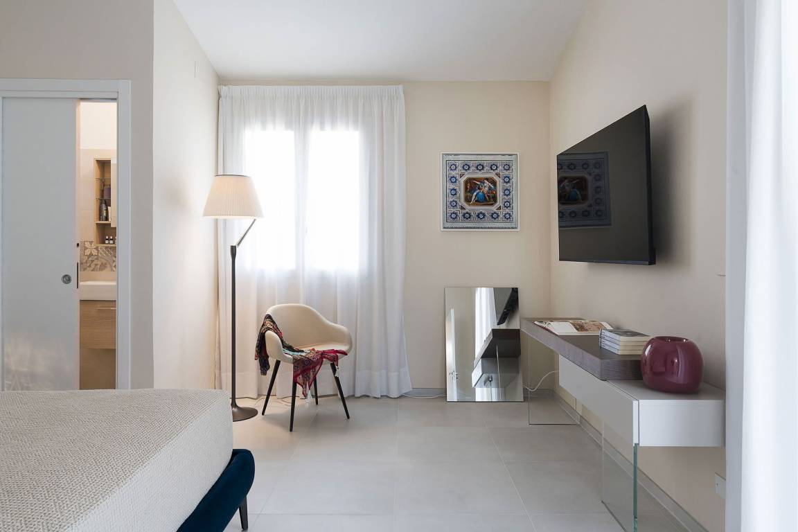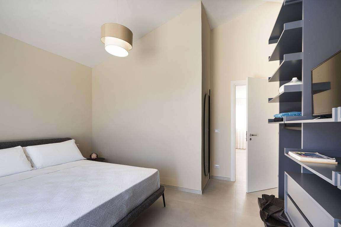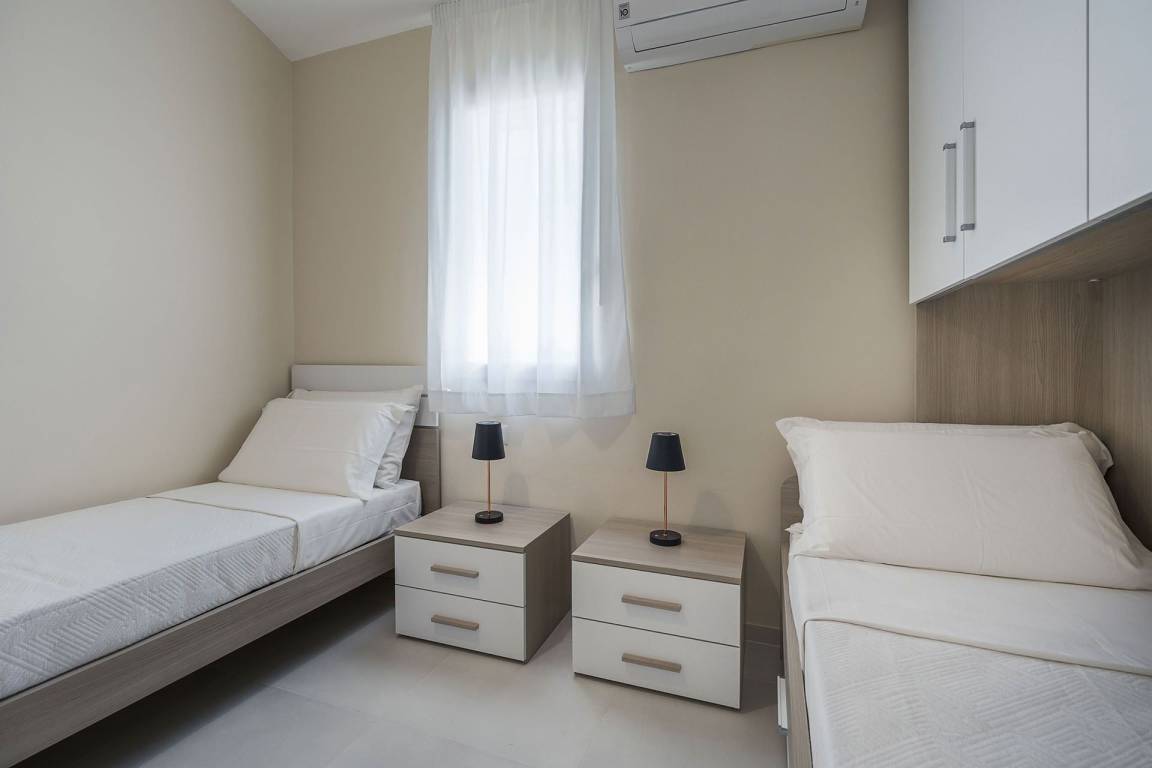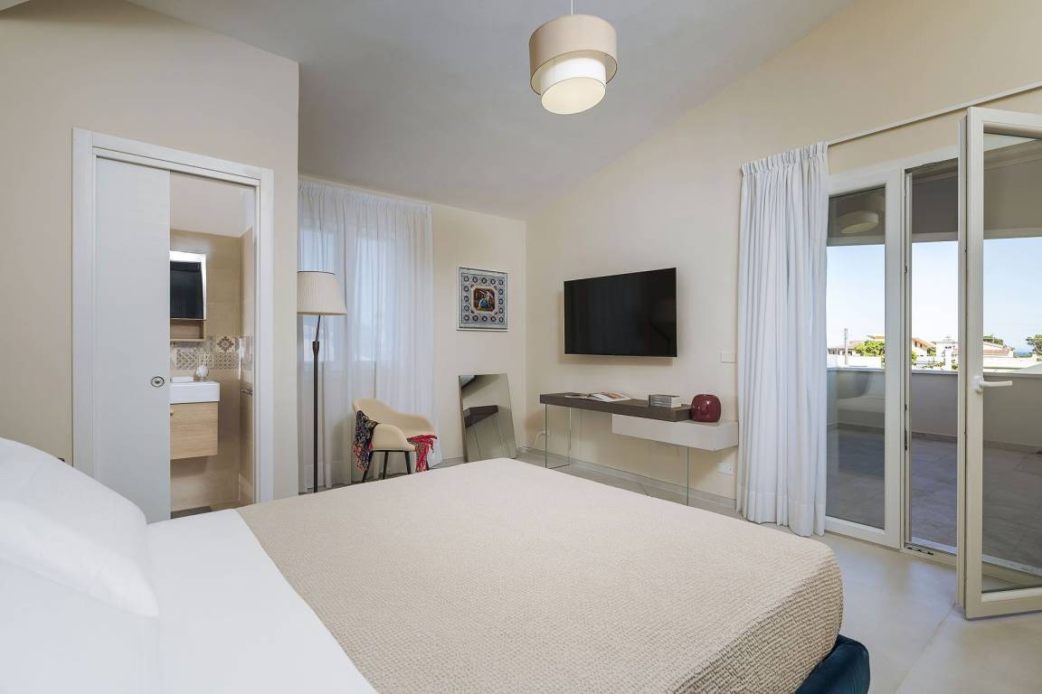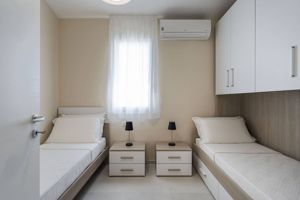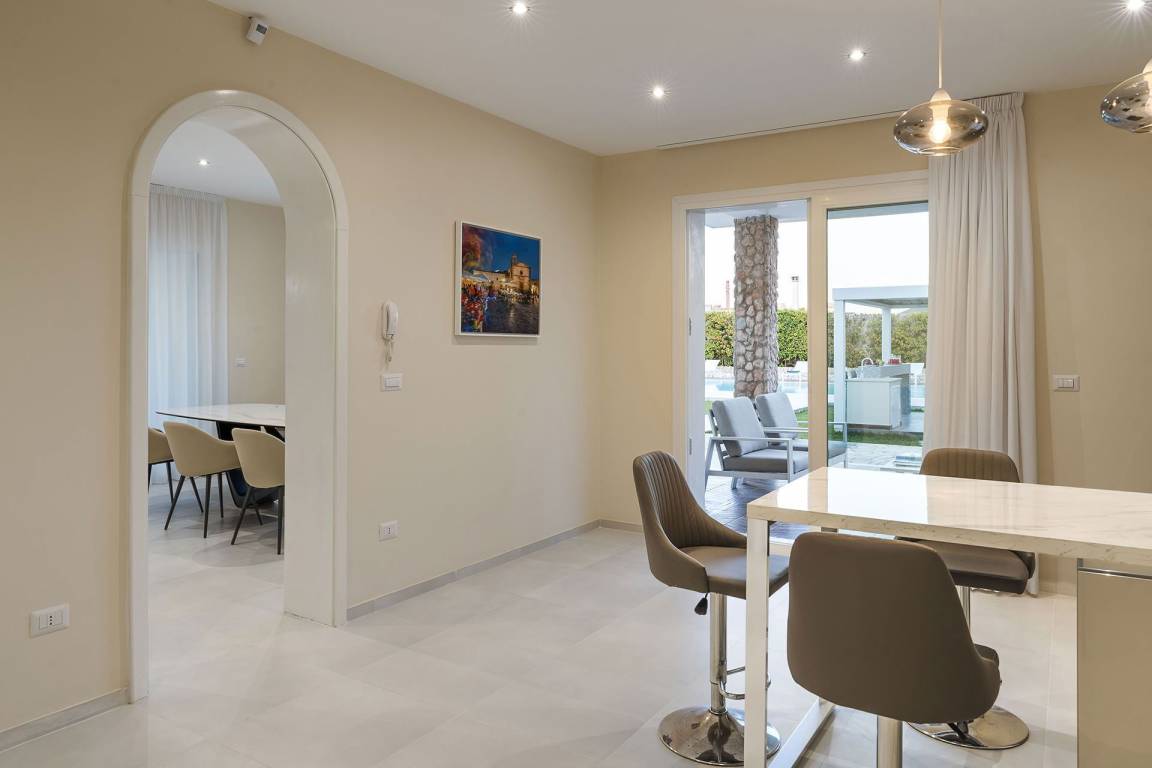 Die Villa Agorà bietet Platz für bis zu 6 Gäste auf einer Gesamtfläche von 3 Schlafzimmern und 3 Bädern. Das Erdgeschoss und die oberen Bereiche sind so gestaltet, dass die Innenräume natürlich zu den Außenbereichen übergehen und eine nahtlose Verbindung zwischen dem Wohnbereich und dem umgebenden Garten sowie dem Poolbereich schaffen.