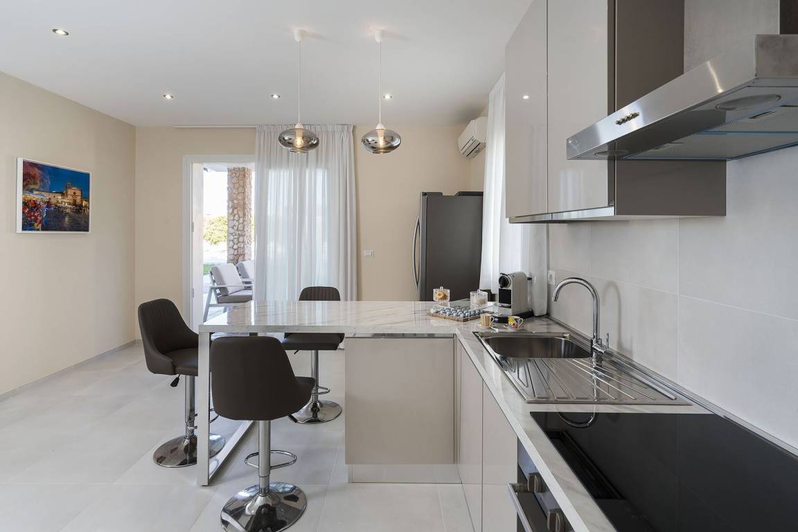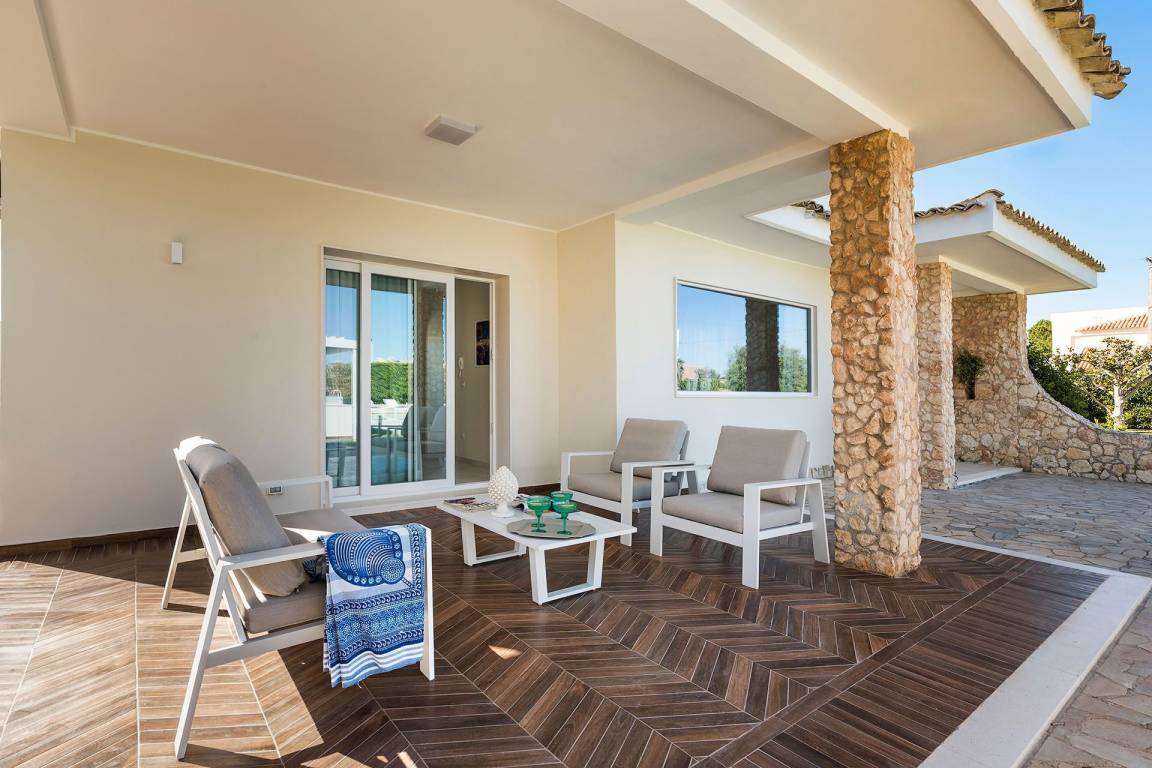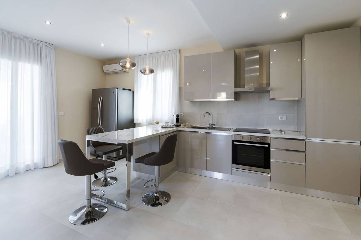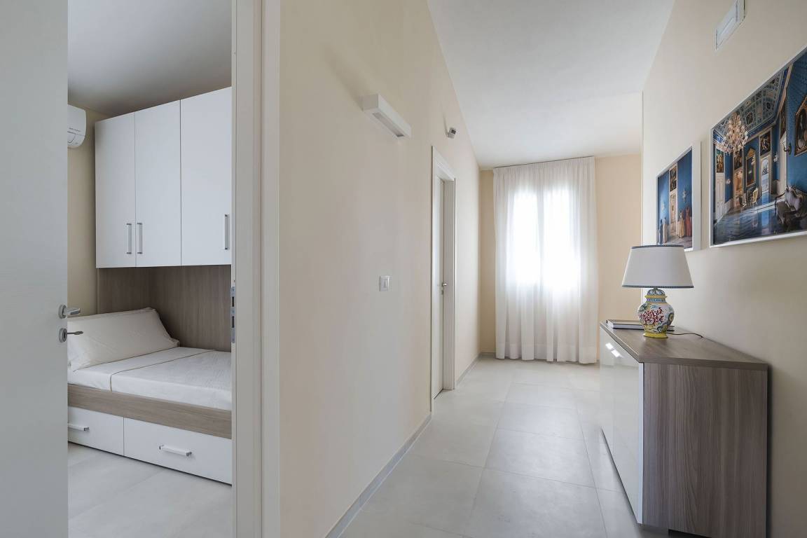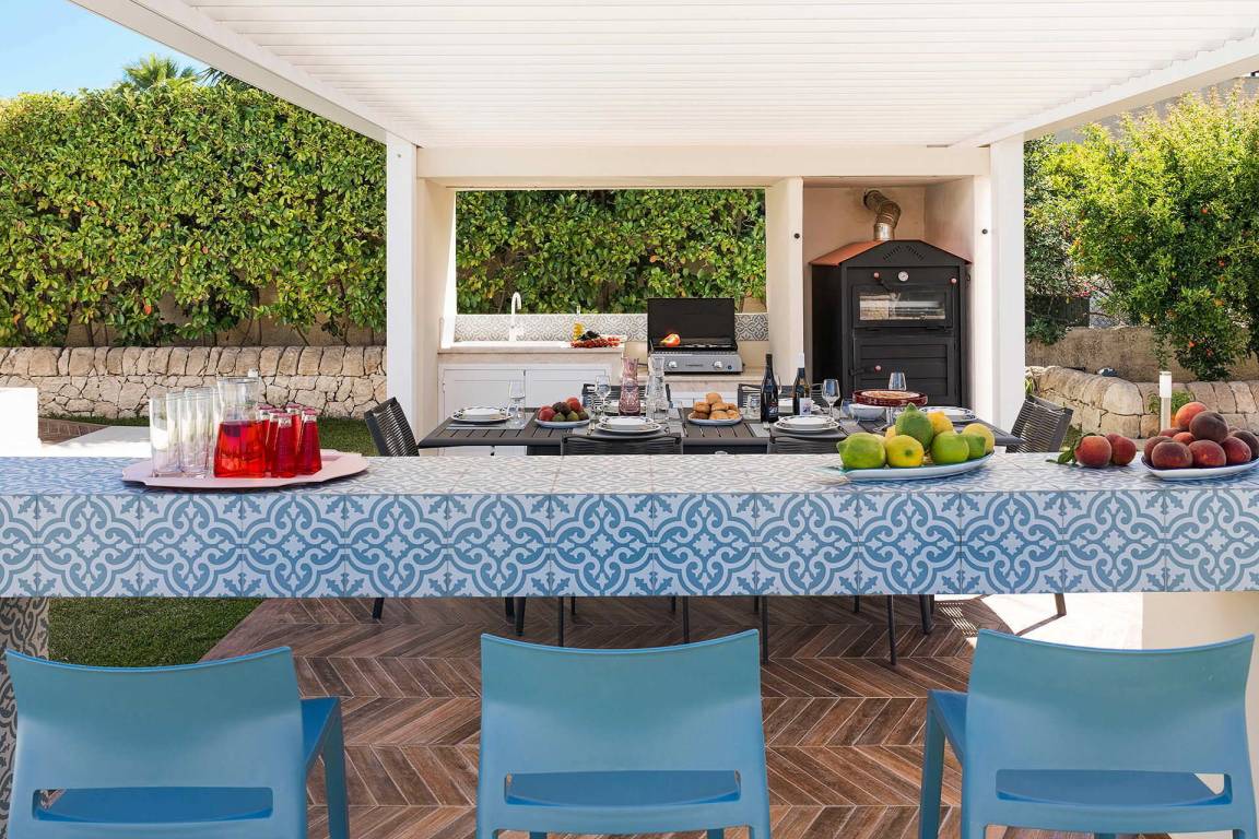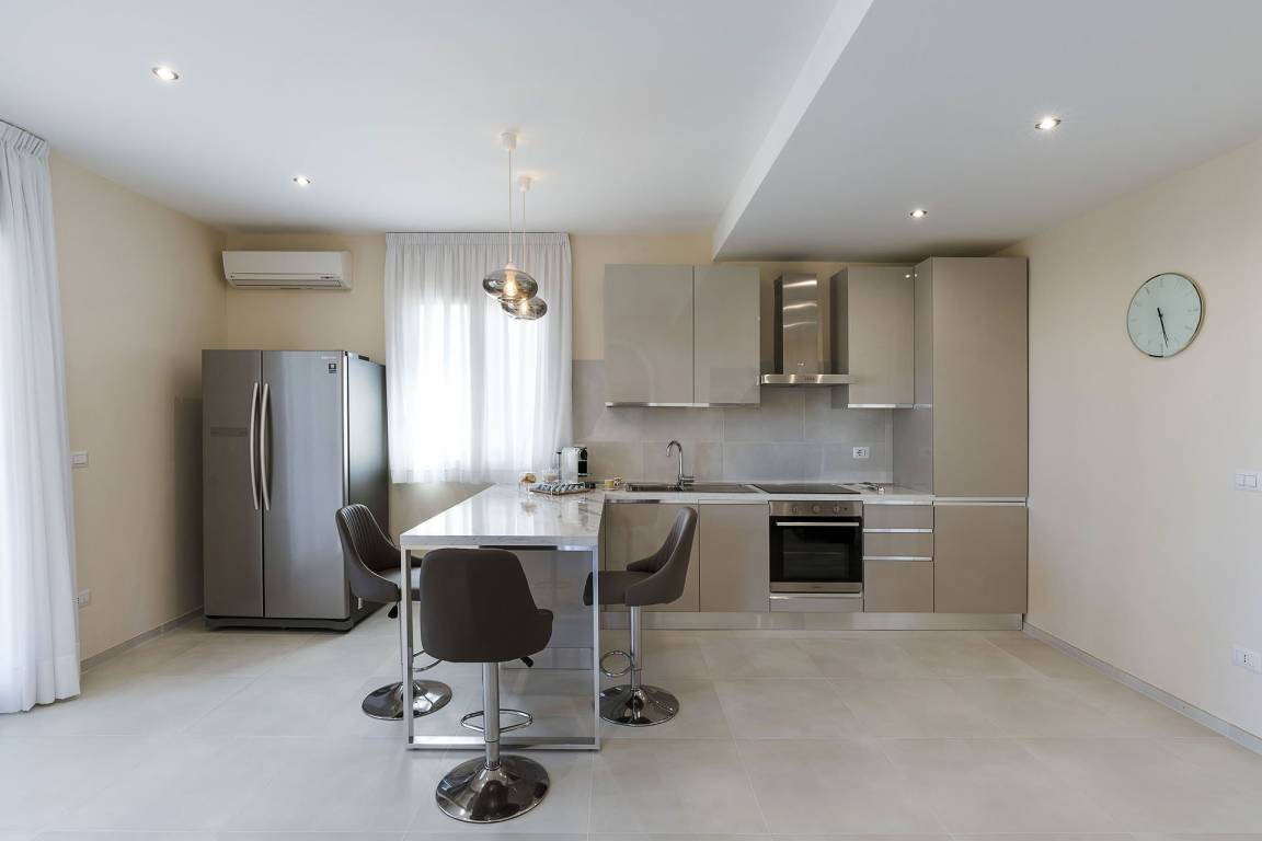 Die Villa Agorà bietet Platz für bis zu 6 Gäste auf einer Gesamtfläche von 3 Schlafzimmern und 3 Bädern. Das Erdgeschoss und die oberen Bereiche sind so gestaltet, dass die Innenräume natürlich zu den Außenbereichen übergehen und eine nahtlose Verbindung zwischen dem Wohnbereich und dem umgebenden Garten sowie dem Poolbereich schaffen.