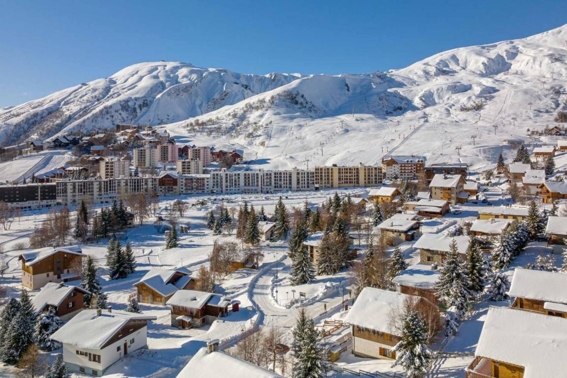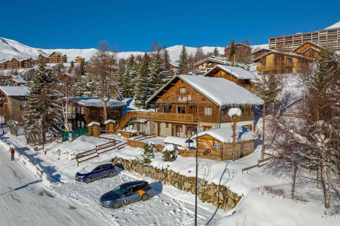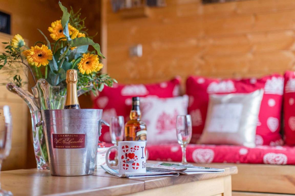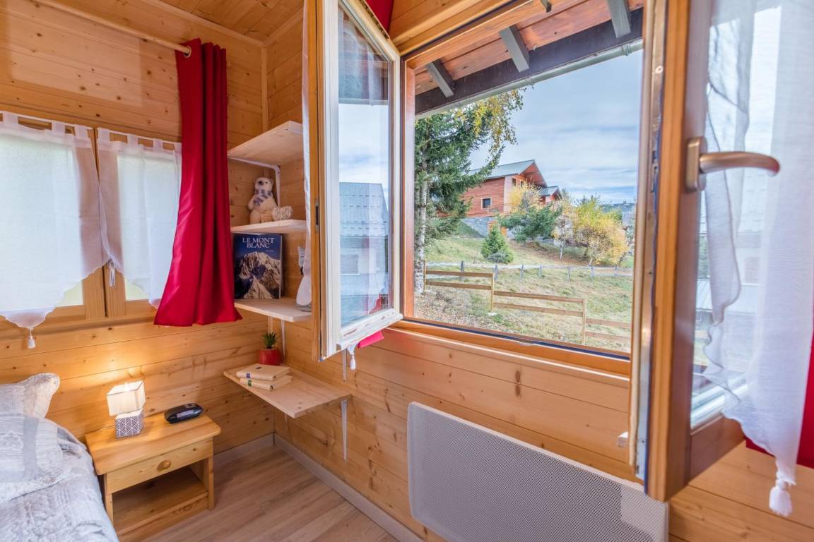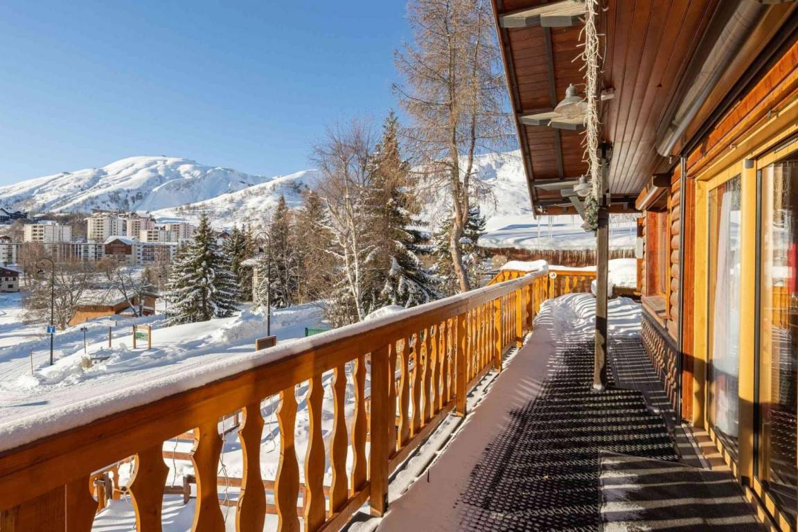 Chalet bestehend aus 2 weiteren Unterkünften, gelegen am Eingang des Resorts, in einem Wohngebiet. Große private Terrasse mit Panoramablick auf das Resort, das Massiv und die majestätischen Aiguilles d'Arves. Helles Wohnzimmer mit Erkerfenstern. Gemeinsamer Parkplatz für die 3 Unterkünfte vor dem Chalet.