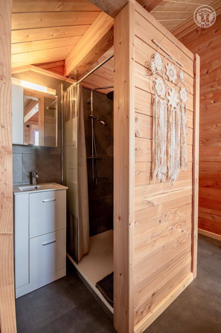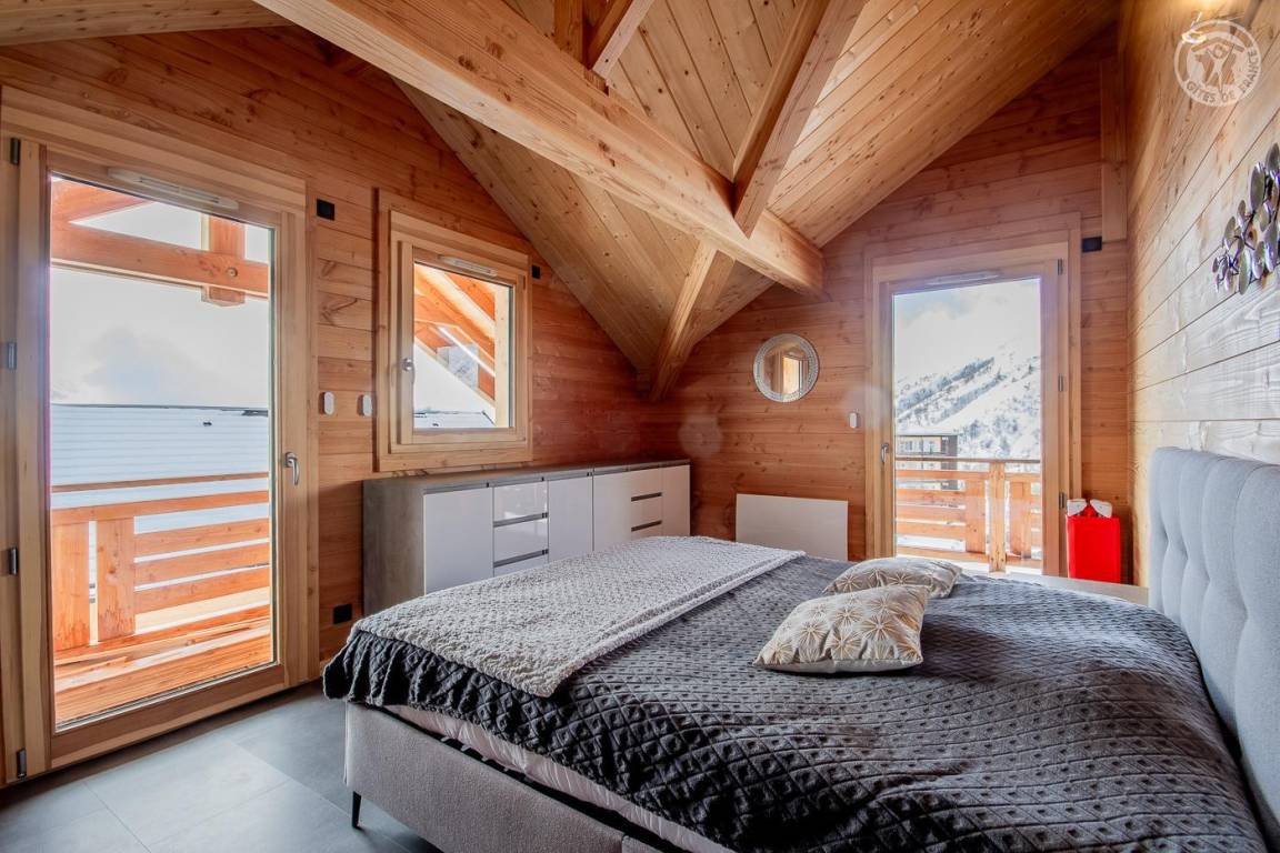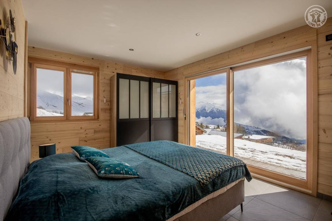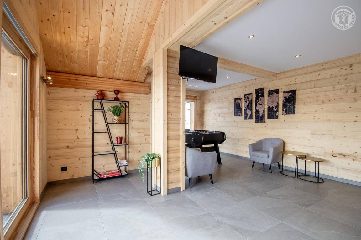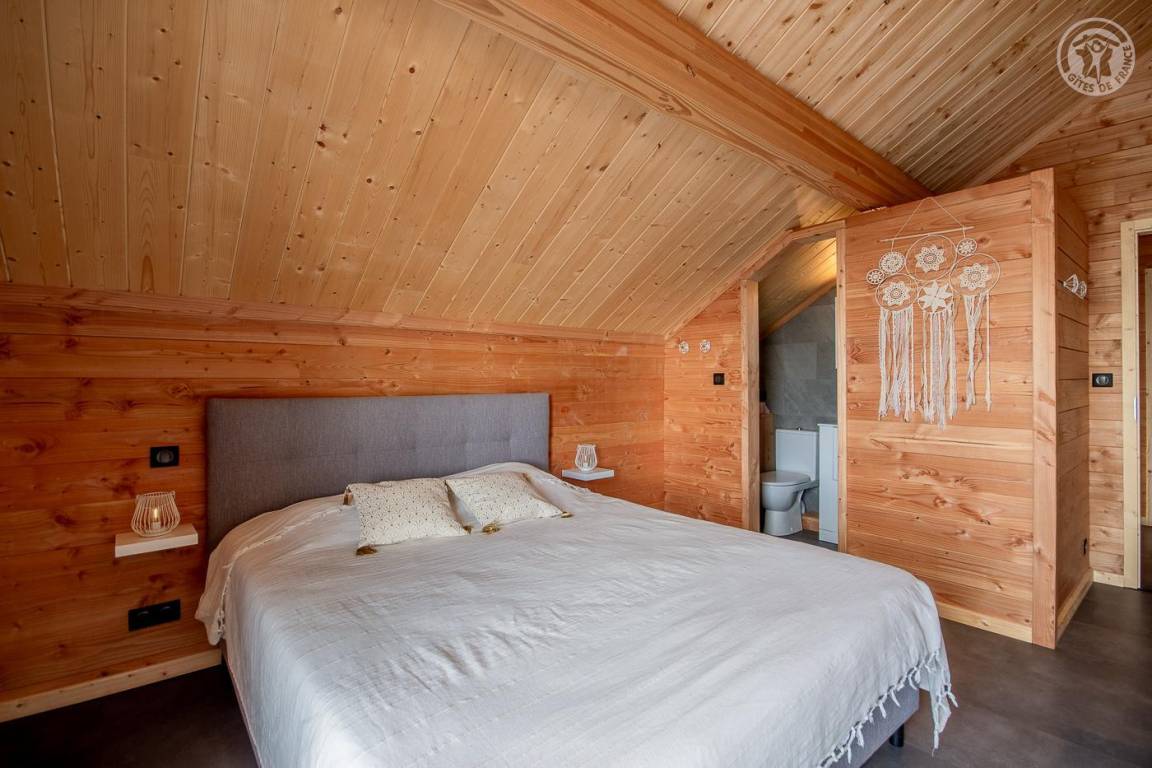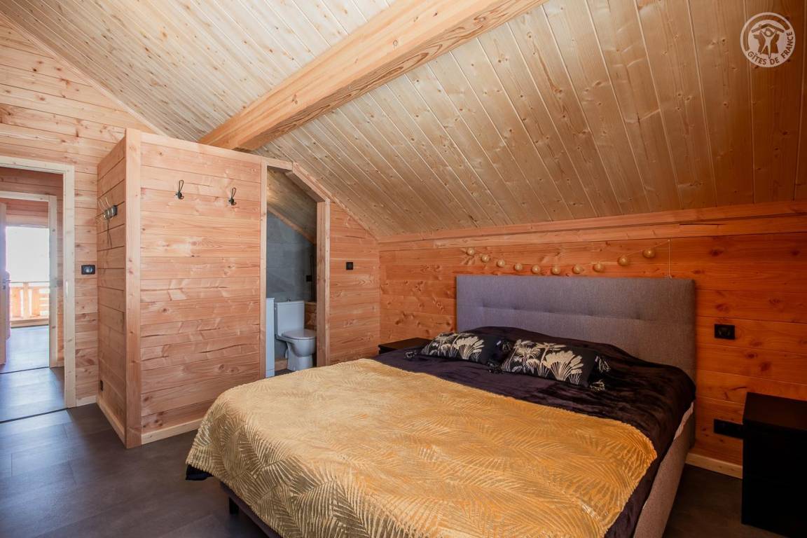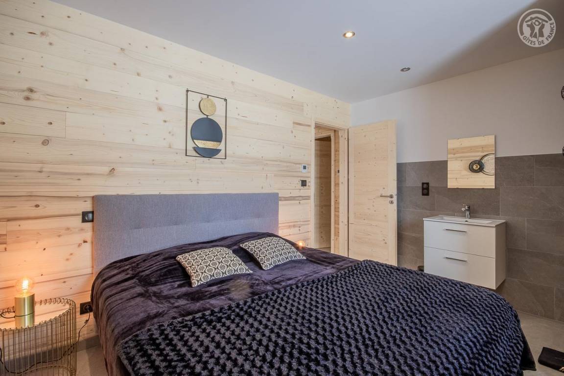 Individuelles Chalet auf 3 Ebenen, darunter im Erdgeschoss: ein großes Spielzimmer (Fernseher, Tischfußball) mit Zugang zur Terrasse (kosmische Sauna und norwegisches Bad), 1 Schlafzimmer (2 Doppelbetten 140 x 190 cm, Etagenbett) und Badezimmer mit eigenem Wasser (Dusche und WC). WC), 1 Schlafzimmer (1 Doppelbett 160x200 cm mit Dusche und WC), 1 Schlafzimmer (1 Doppelbett 160x200 cm und Dusche), separates WC. 1. Stock: Eingang, Waschküche, Wohnküche mit Balkon-Terrasse (Tisch und 10 Stühle), separates WC. 2. Etage: 2 Schlafzimmer (1 Doppelbett 160x200 cm/1 Doppelbett 160x200 cm) mit eigenem Bad (Dusche und WC), 2 Schlafzimmer (2 Einzelbetten 90x190 cm und Dusche / 1 Doppelbett 160x200 cm mit Dusche und WC), Balkon .
