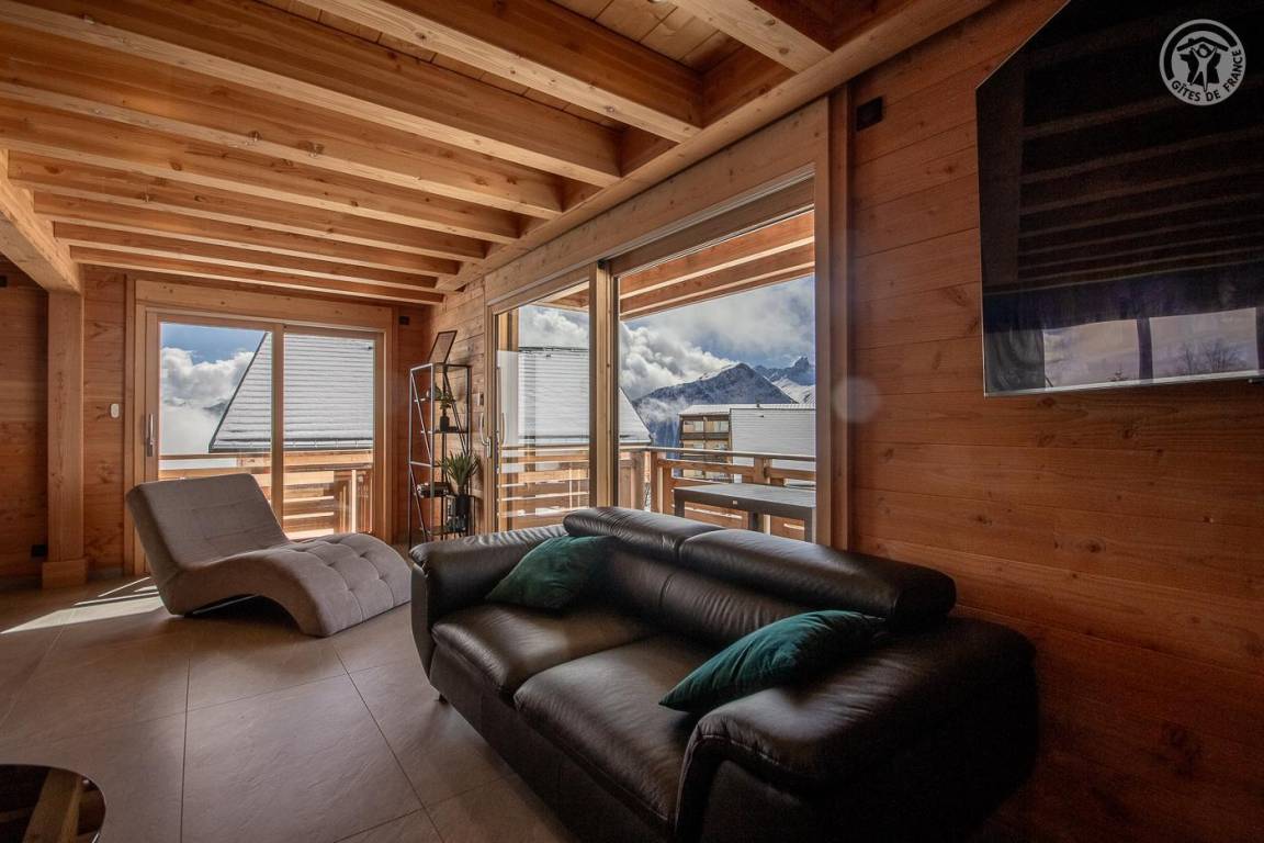 „Le chalet est très bien équipé, facile d'accès (arrêt de bus à proximité, piste à 50 m) avec une jolie vue. On a passé un très bon moment à quatre familles d'amis.“