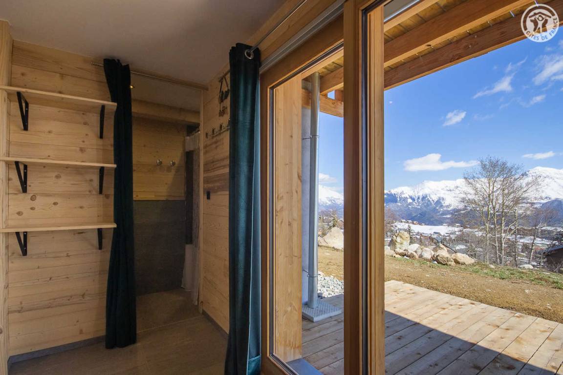 „Le chalet est spacieux et on ne se marche pas dessus. Très fonctionnel. Chambres grandes et grand plus d'avoir un WC douche dans quasiment toutes les chambresLe spa nordique avec vue sur montagne est apprécié:-)“