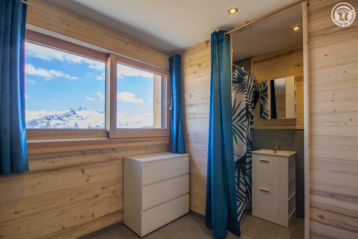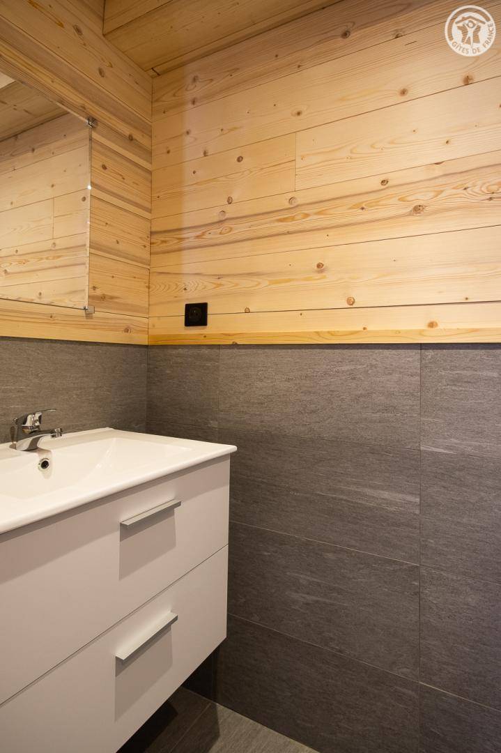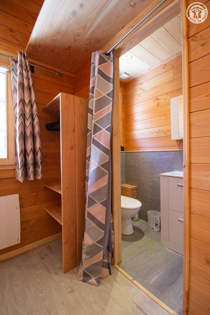 Individuelles Chalet auf 3 Ebenen. Eingang vom Parkplatz wenige Schritte vom Parkplatz als Chalet am Hang: Eingang, Wohnküche, Aufenthaltsraum mit Fernseher, Eckbalkon mit Terrasse, separates WC (Waschbecken). Garten - Ebene (Ebene -1): ein kleines Wohnzimmer mit TV, 3 Schlafzimmer: 1 Schlafzimmer Öffnung auf eine Terrasse (2 Etagenbetten und ein Badezimmer), 1 Schlafzimmer (1 Doppelbett und eine Dusche offen zum Schlafzimmer), 1 Schlafzimmer (1 Doppelbett) mit Bad (Dusche und WC), sep. WC (mit Waschmaschine und Trockner). Etage (1. Stock vom Parkplatz und das Wohnzimmer): 4 Schlafzimmer , davon 3 Schlafzimmer ( je 1 Doppelbett) und eine eigenes Bad (Dusche und WC), 1 Schlafzimmer (1 Doppelbett und Dusche zum Schlafzimmer offen). Norwegisches Bad auf der Gartenterrasse. Elektrische Rollläden.