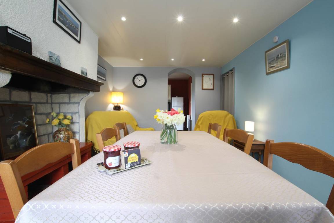 „Un gîte très agréable, bien situé, à proximité de la plage, où l'on sent la volonté des propriétaires de satisfaire les vacanciers. Tout est parfait. L'accueil est chaleureux: Merci encore pour les confitures et les jolis bouquets! La maison est parfaitement propre, vaste, la literie est particulièrement confortable, il ne manque absolument rien, que ce soit pour la vaisselle, les ustensiles ménagers, le mobilier d'extérieur ou la documentation très fournie. La cour est bien close (pas de problème pour laisser le chien gambader) avec pelouse et parterres fleuris. J'ai déjà hâte de revenir dans ce très beau gîte et dans cette magnifique région !“