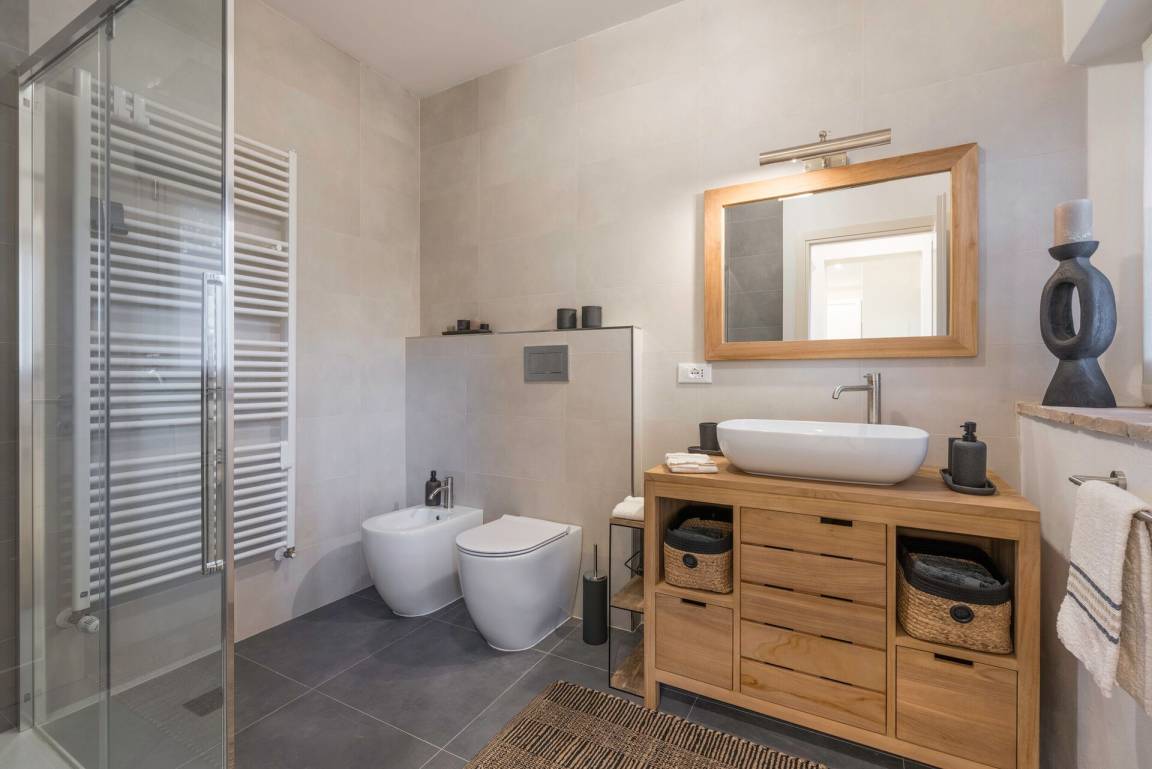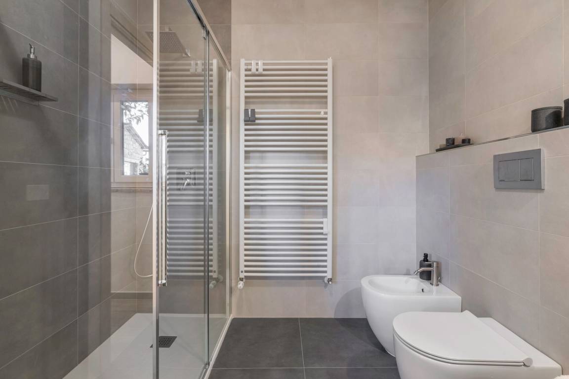 Badezimmer: Waschbecken, WC, Bidet, Dusche, Fön, WiFi Internet.