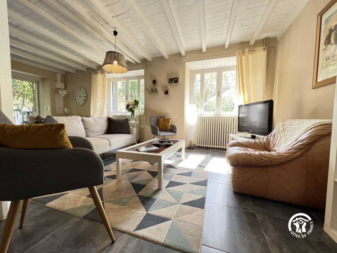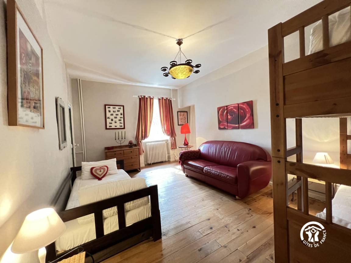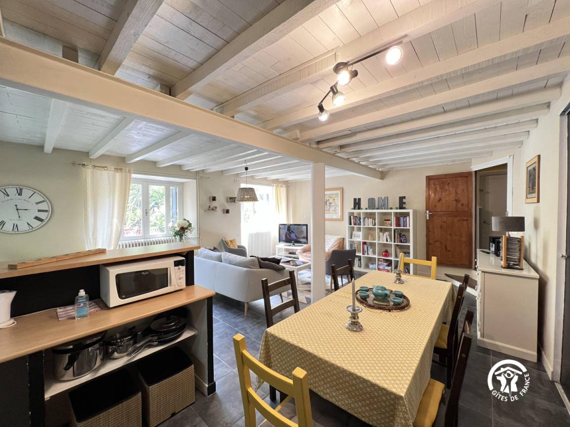 „Accueil sympathique des propriétaires qui nous ont notamment conseillé de belles visites à faire en famille. Le gite est à proximité de beaux sites touristiques naturels. Très joli et grand jardin arboré. Nous sommes un peu plus mitigé sur le gite mais probablement parcequ'il ne correspond pas suffisamment à nos besoins de famille avec 4 enfants et à notre manière de vivre les vacances. Le gite est mitoyen mais également communicant avec la résidence des propriétaires: Une porte en RDC et une porte dans la chambre des enfants (condamnées) mais cela prive les 2 logements d'une certaine intimité et les isole mal du bruit. La chambre parentale est également communicante avec la chambre des enfants. Par ailleurs, très peu de rangements pour les vêtements. Nous avons laissé la plupart des affaires dans les valises. Et pas suffisamment de vaisselle du quotidien (à 6 personnes, cela va vite !) Un seul toilette qui se trouve à l'étage. Plancher en bois qui fait le charme du gite mais qui complexifie la vie de famille avec les bruits que cela engendre. Enfin, les horaires de piscine ne sont pas réellement adaptés pour les jeunes enfants car moment où il fait le plus chaud et où les plus jeunes font potentiellement la sieste. Piscine non sécurisée et à proximité immédiate du gite. Pour conclure, gite charmant mais peu adapté aux familles avec jeunes enfants.“