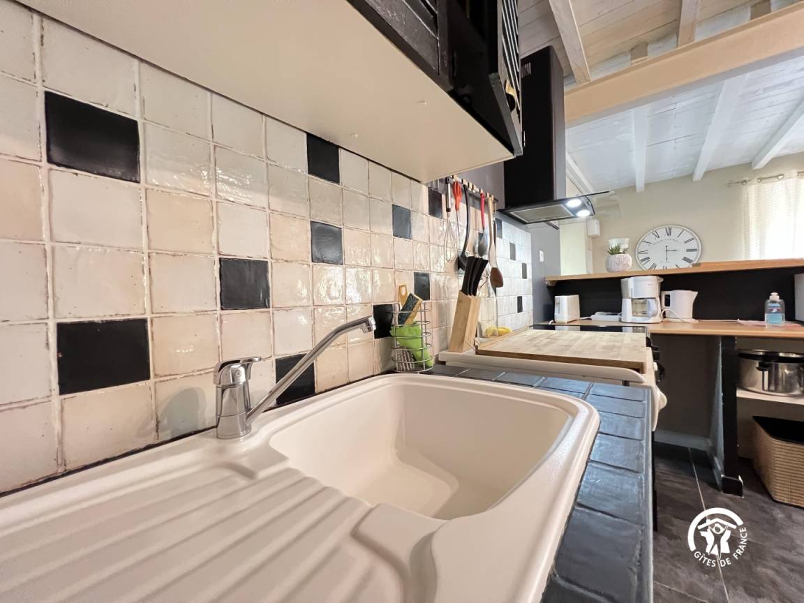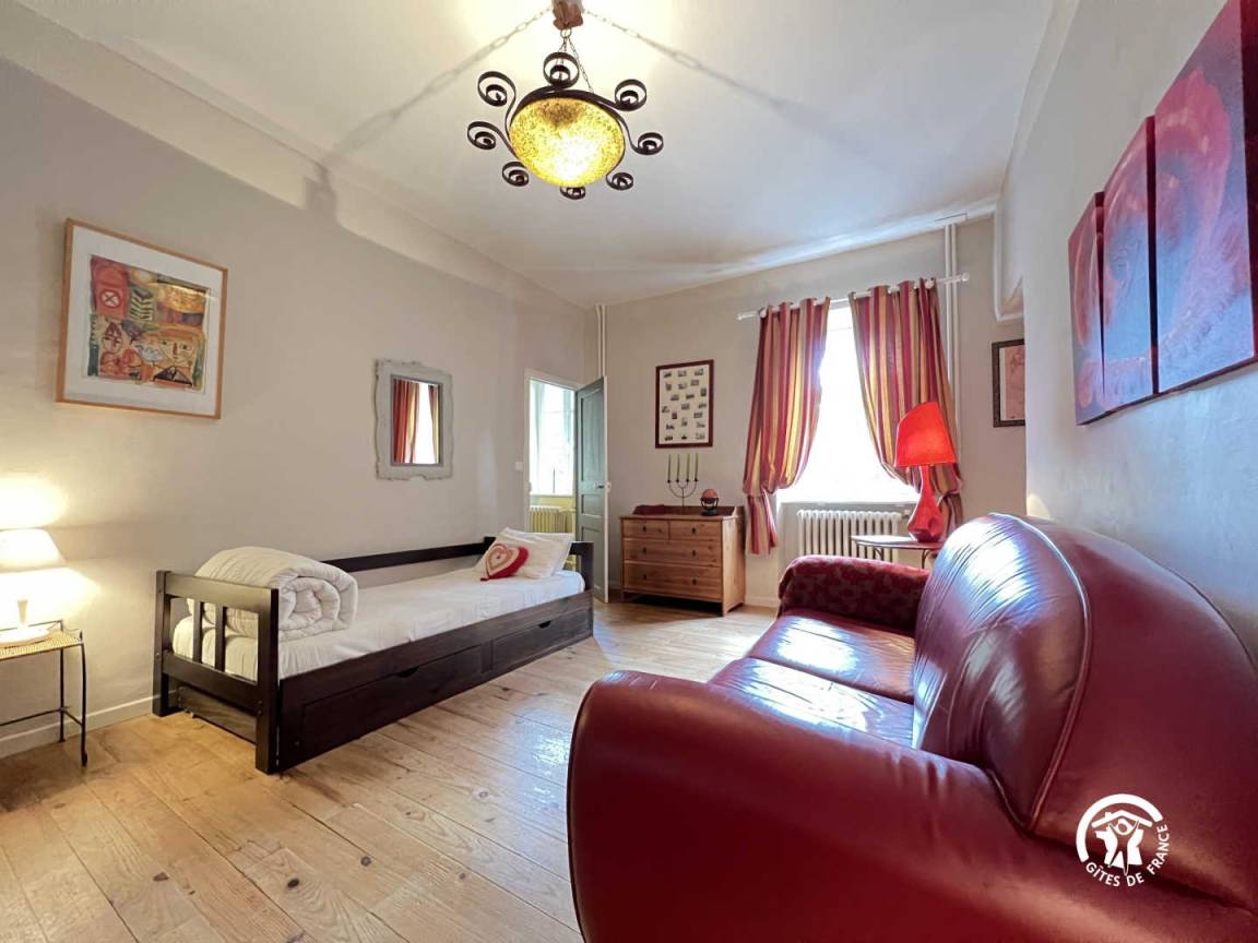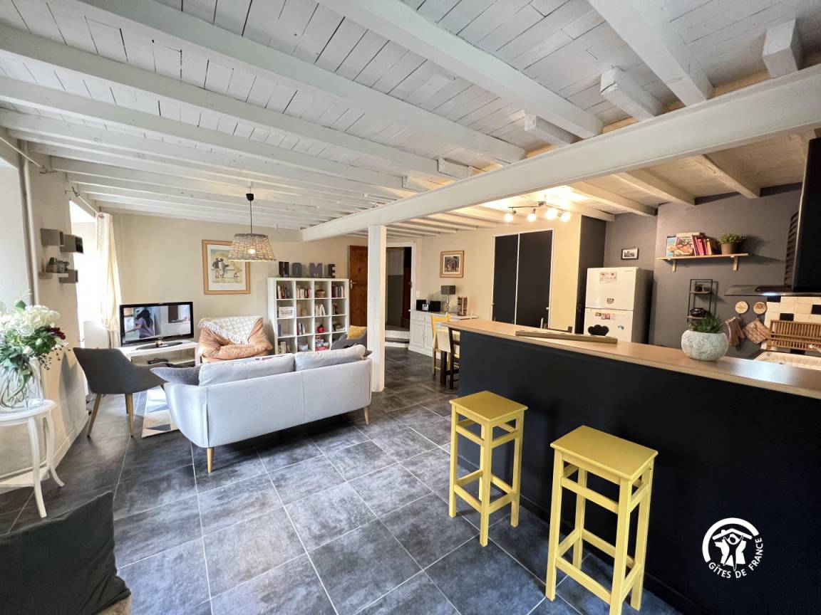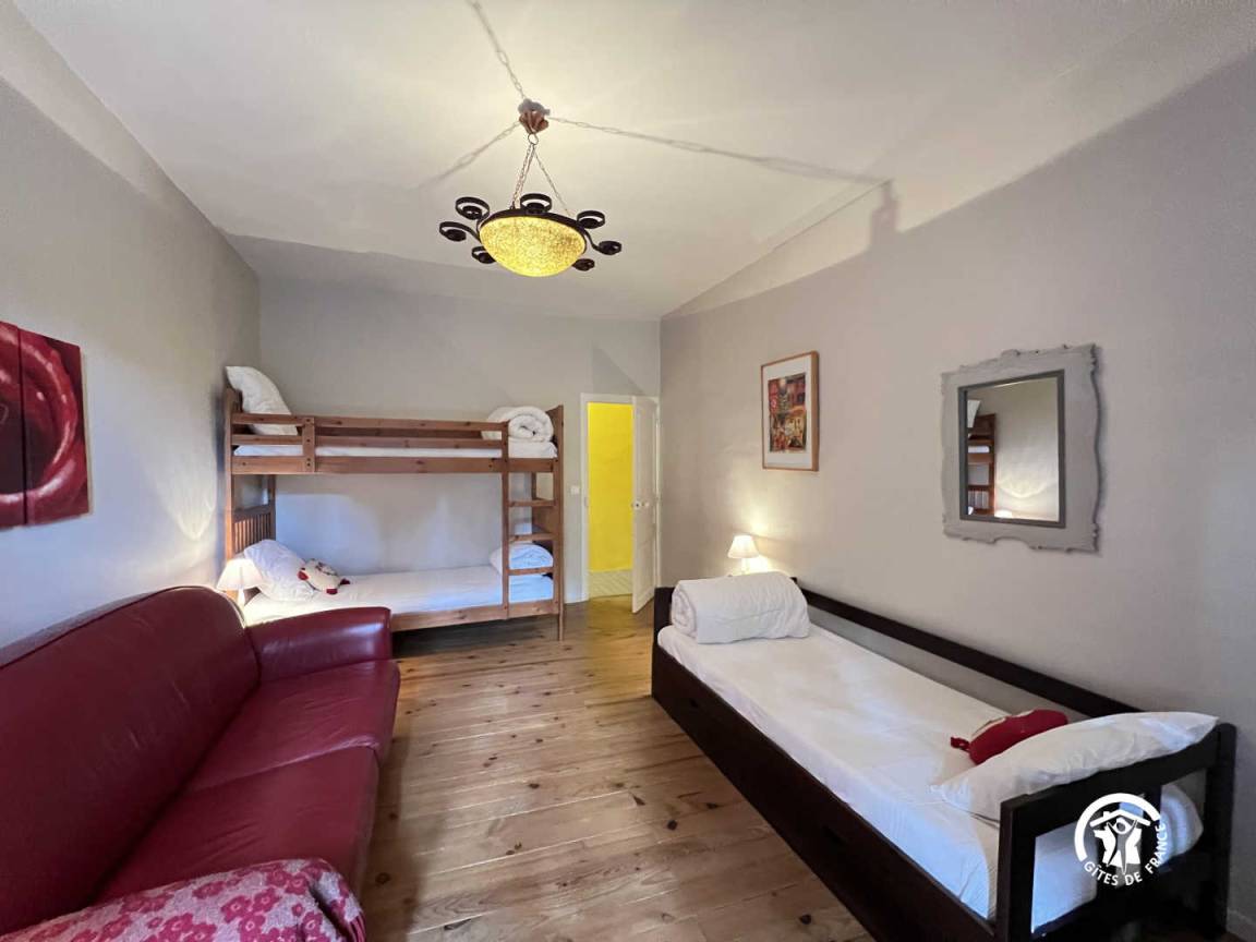 „Accueil sympathique des propriétaires qui nous ont notamment conseillé de belles visites à faire en famille. Le gite est à proximité de beaux sites touristiques naturels. Très joli et grand jardin arboré. Nous sommes un peu plus mitigé sur le gite mais probablement parcequ'il ne correspond pas suffisamment à nos besoins de famille avec 4 enfants et à notre manière de vivre les vacances. Le gite est mitoyen mais également communicant avec la résidence des propriétaires: Une porte en RDC et une porte dans la chambre des enfants (condamnées) mais cela prive les 2 logements d'une certaine intimité et les isole mal du bruit. La chambre parentale est également communicante avec la chambre des enfants. Par ailleurs, très peu de rangements pour les vêtements. Nous avons laissé la plupart des affaires dans les valises. Et pas suffisamment de vaisselle du quotidien (à 6 personnes, cela va vite !) Un seul toilette qui se trouve à l'étage. Plancher en bois qui fait le charme du gite mais qui complexifie la vie de famille avec les bruits que cela engendre. Enfin, les horaires de piscine ne sont pas réellement adaptés pour les jeunes enfants car moment où il fait le plus chaud et où les plus jeunes font potentiellement la sieste. Piscine non sécurisée et à proximité immédiate du gite. Pour conclure, gite charmant mais peu adapté aux familles avec jeunes enfants.“