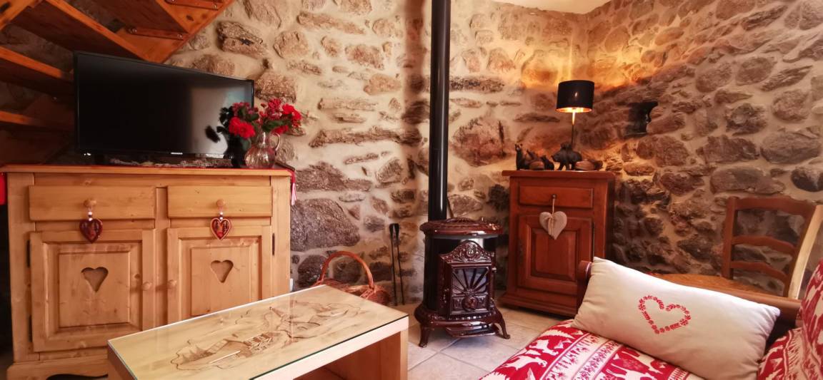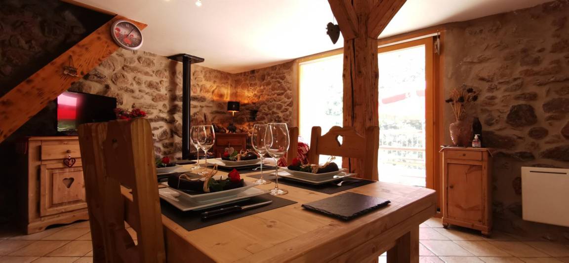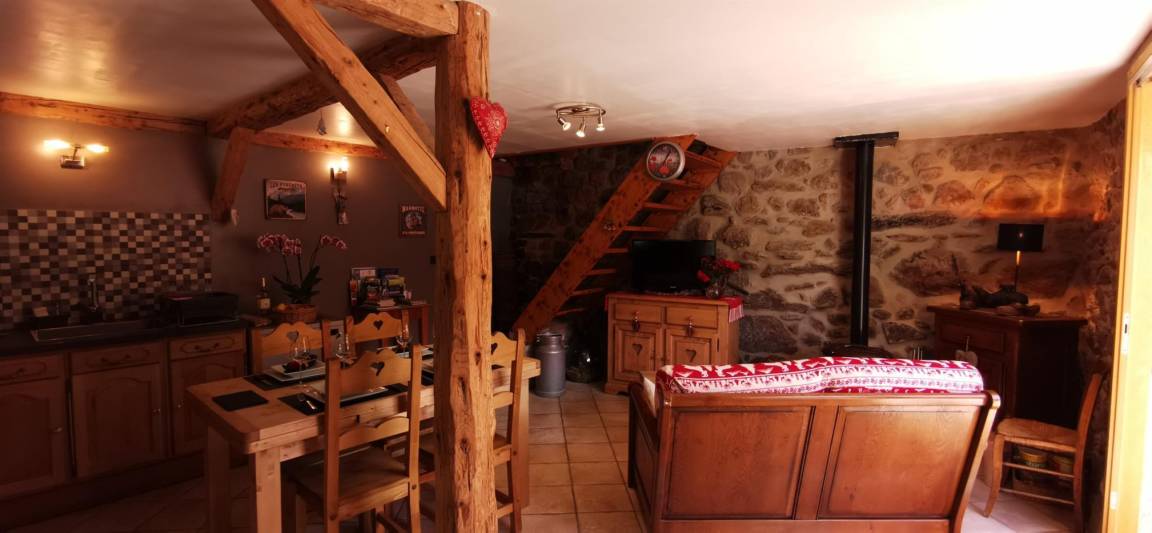 „Gîte très chaleureux et confortable. Décoration de très bon goût dans le thème montagnard. Très bien équipé quant à la vaisselle, appareil raclette, fondue.... Repas du 25 décembre en terrasse en plein soleil. Divin. Le petit moins, les escaliers un peu dangeureux pour des seniors. Attention également au supplément électricité.“