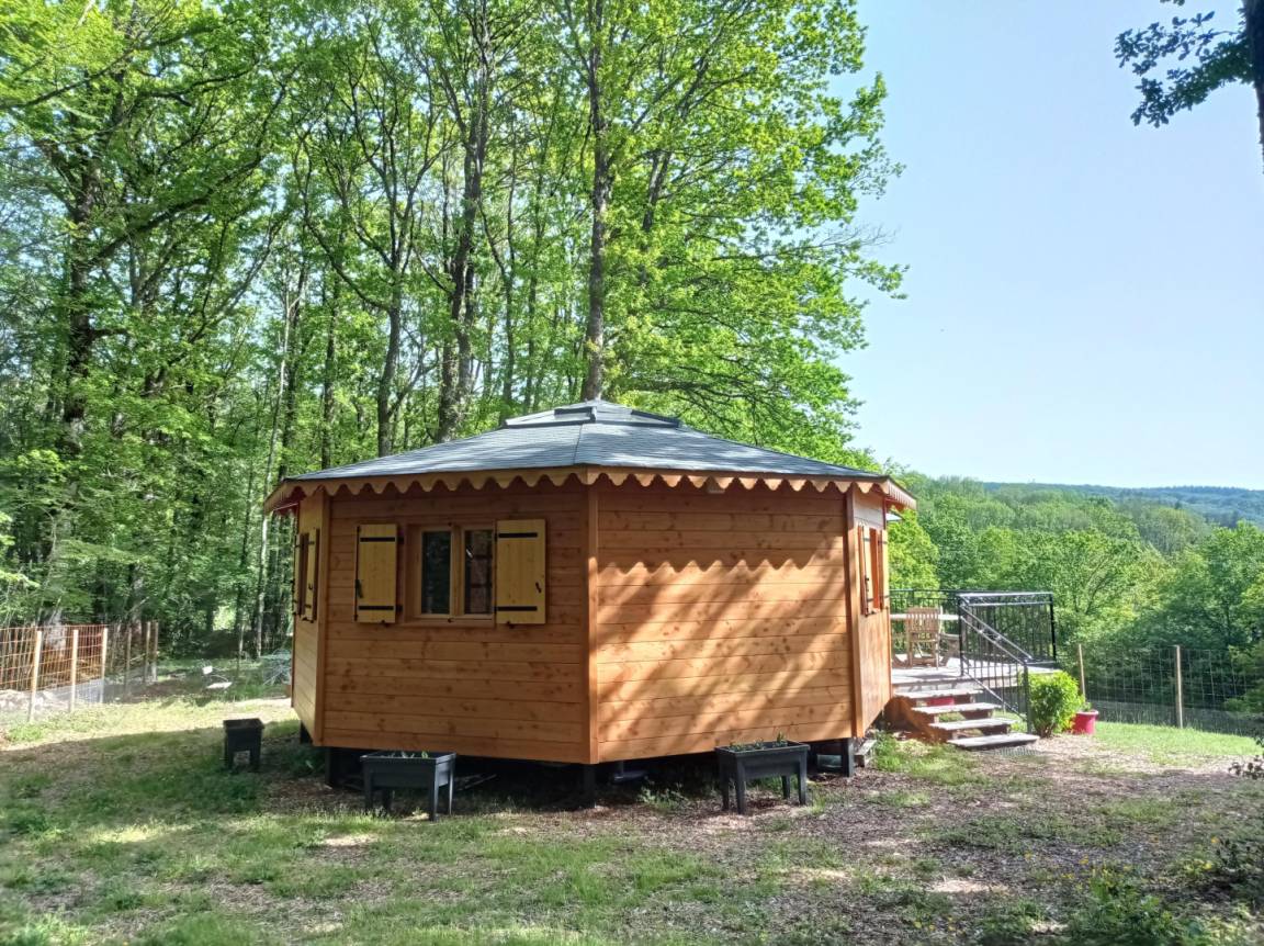 „Un séjour en pleine nature, dans un gîte en bois très confortable et original (octogone avec puits de lumière) Beaucoup de balades à proximité, avec des lacs verdoyantsUn accueil très sympathique“