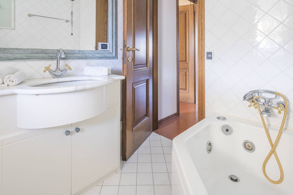 Badezimmer 1: Whirlpool-Badewanne, Waschbecken, WC, Bidet, Fön, WiFi Internet.