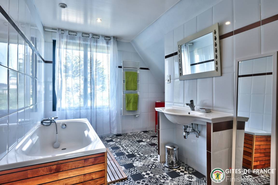 „We had a very pleasant stay in this spacious and comfortable gite. The bedrooms are all of a good size and the beds very comfortable. The lounge area lacked comfortable seating for all 6 of us but the dining area was a good size. The large wrap around garden is a bonus for children. The washing machine was very useful but there was no washing line, only 1 small airer. The gite is located in a quiet lane within easy walking distance of the Pointe de Mousterlin with its fabulous rock pools at low tide, and also the magnificent Kerler beach with its powder white sands. There is a super boulangerie 500m away. Short distance by car to Benodet (beach, restaurants, marina, market), Fouesnant (market, supermarket, shops, swimming pool, bike hire shop), Cap Coz (fabulous beach, water sports) and Beg Meil (coastal walks, secluded coves, boat trip to Concarneau, restaurants). Easy access to cycle routes.“