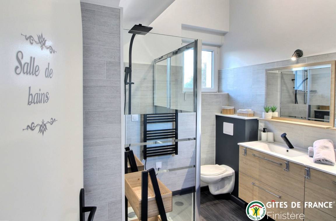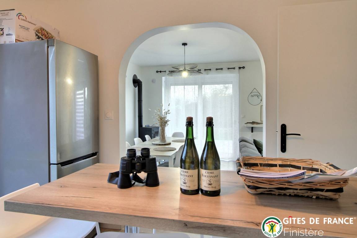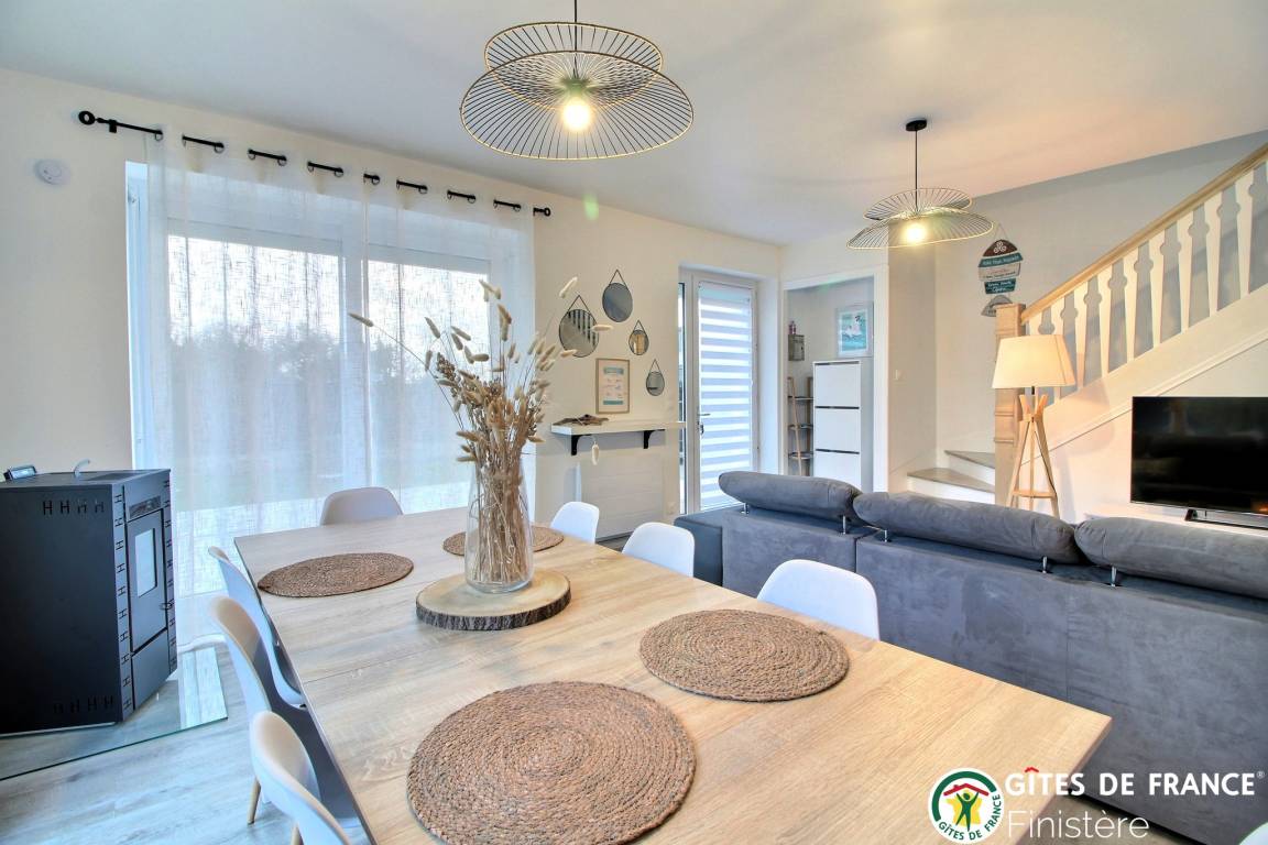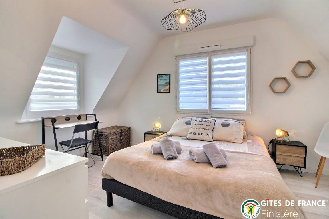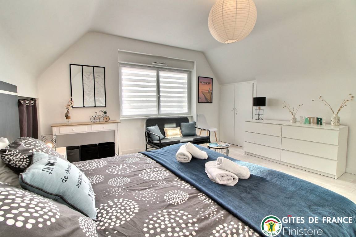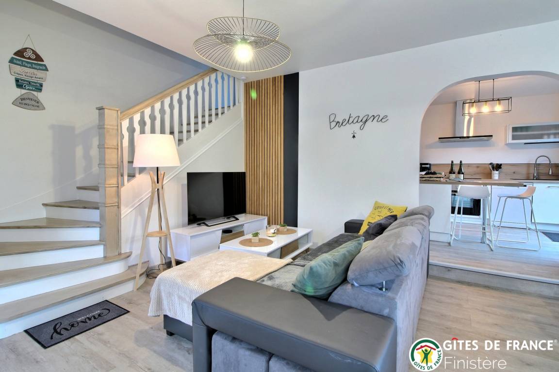 „Charmant gîte pour passer de bonnes vacances en famille !Idéalement placé pour visiter le Finistère, nous n'avons manqué de rien. Déco contemporaine très agréable et le petit plus, les vélos à disposition !Nous recommandons ce logement pour vos vacances !“
