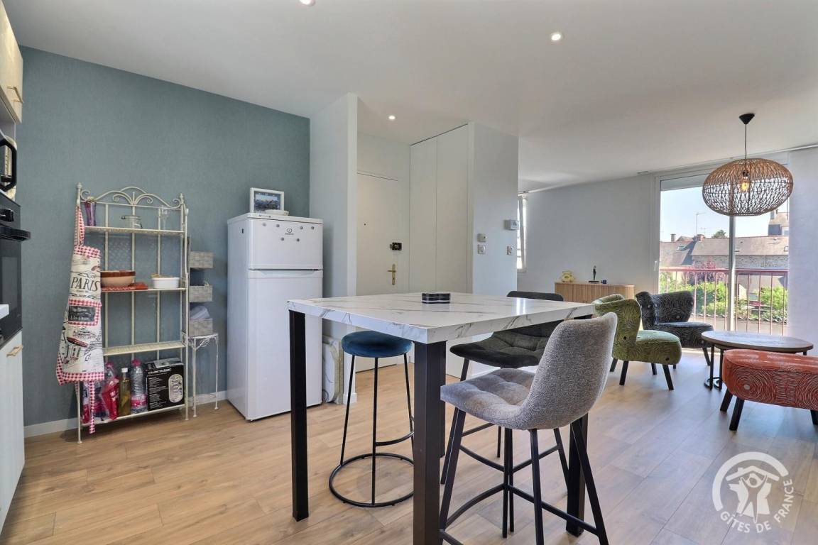 „L'appartement est très bien équipé et bien situé à Fougères, il n'est pas nécessaire de prendre la voiture pour se rendre dans les commerces.“