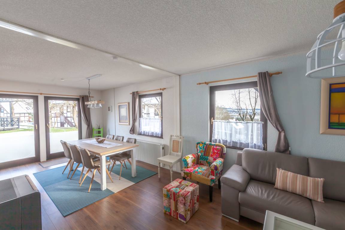 Die helle und großzügig geschnittene Ferienwohnung wurde von uns mit sehr viel Liebe zum Detail eingerichtet und bietet eine umfangreiche Ausstettung, mit offenem Wohnkonzept. Es handelt sich um die im EG gelegene, von insgesamt zwei Ferienwohnungen, eines freistehenden, im Fachwerkstil erbauten Ferienhauses mit eigenem Eingang.
