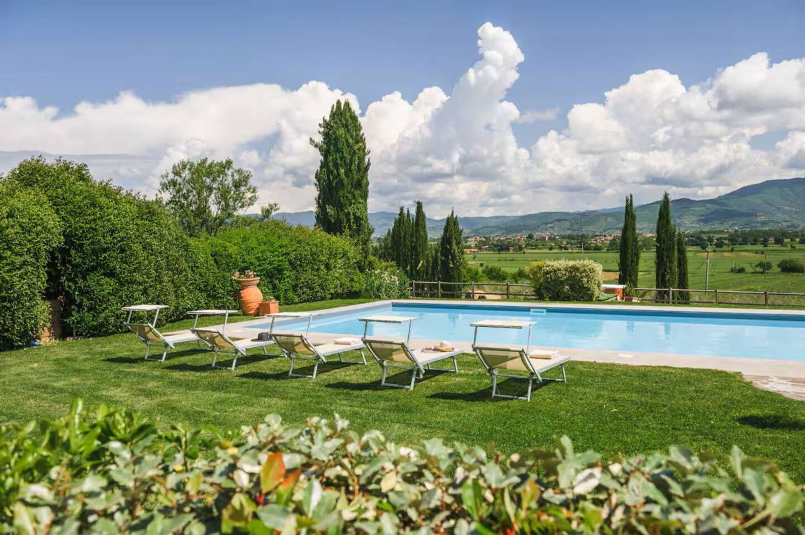 „17 of us stayed for a week mid August. Weather was 30-35 degrees. The villa is impressive, the accommodation is spacious and the views are magnificent. It is very well located for Cortona, vineyards and Siena, San Gimi and further afield. The host, Isolina, is an absolute gem and is very helpful for suggestions. We recommend guests have at least one home breakfast and one dinner. Understand some of the rooms will be updated soon. Careful of using the expensive air conditioning. We throughly recommend this villa for a large group.“
