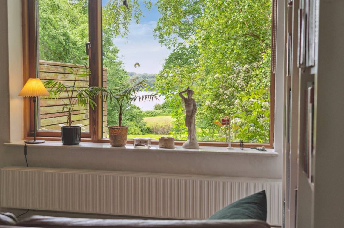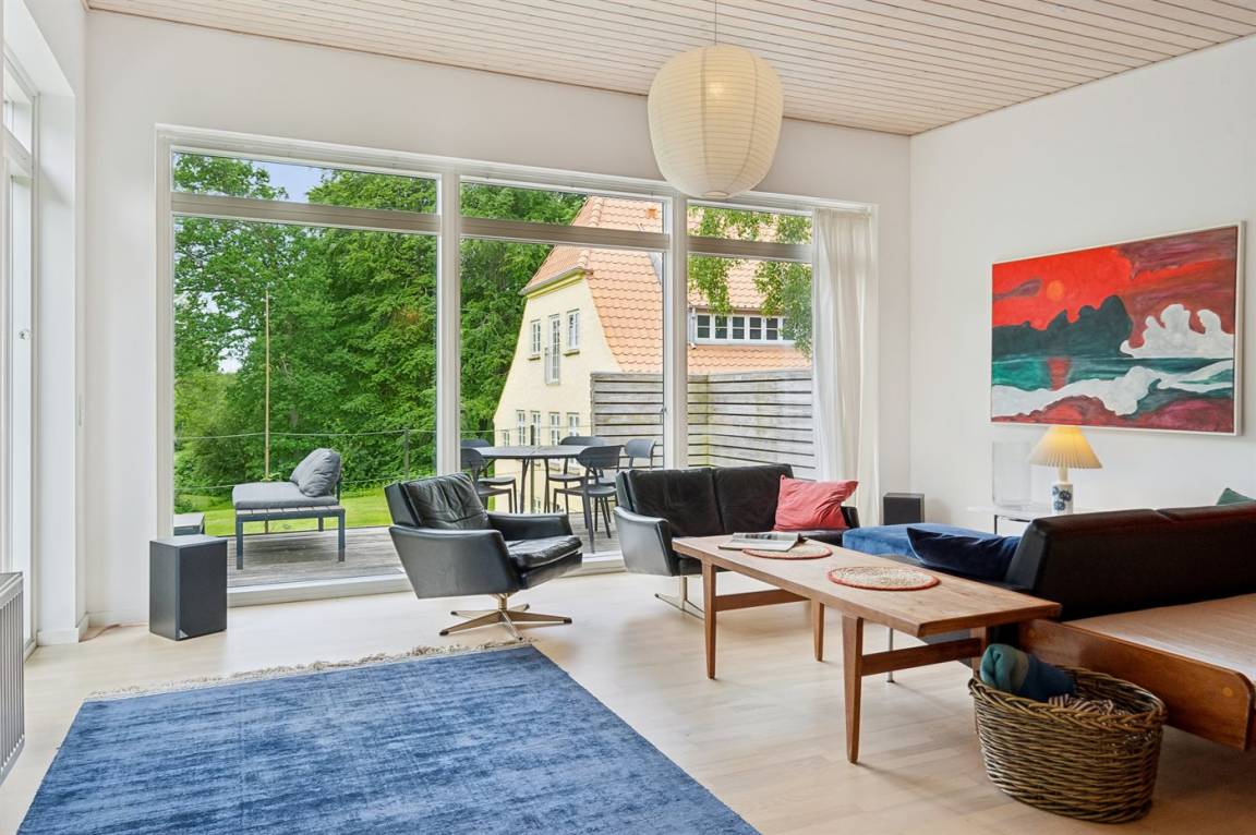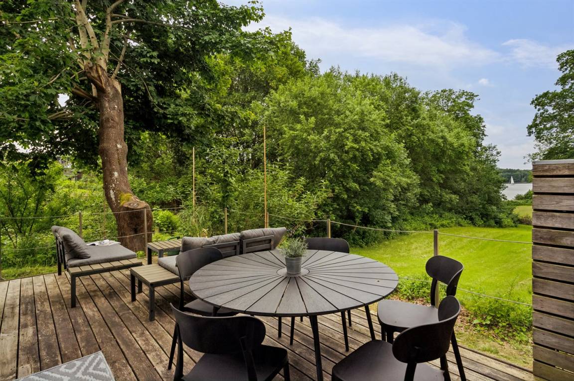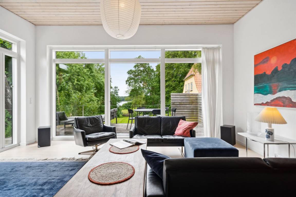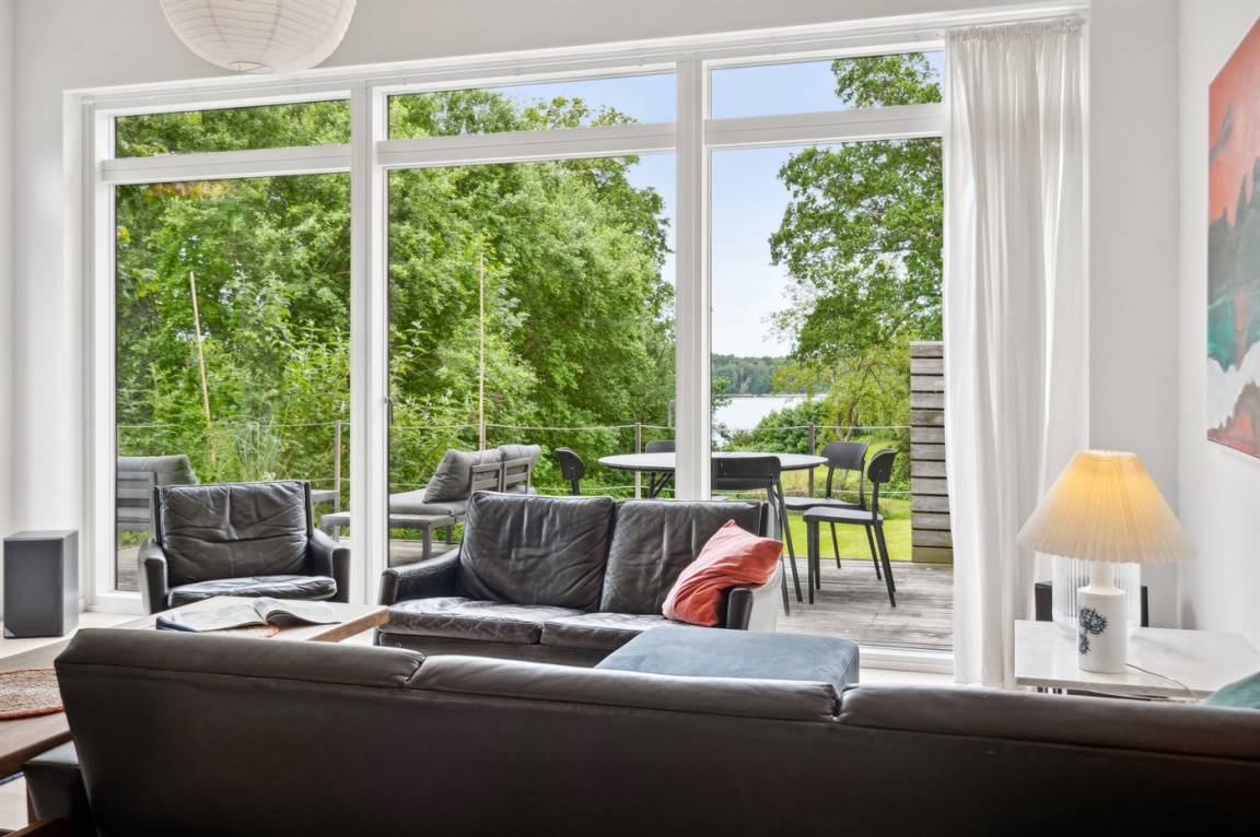 Das Grundstück liegt ungestört, und es gibt viel Platz, damit die Kinder sich austoben können. Der Mittelpunkt des Hauses ist das große Wohnzimmer mit direktem Zugang zur fantastischen Terrasse, von der aus man einen sehr schönen Blick auf die Natur und nicht zuletzt auf den Kleinen Belt hat. Die schöne Aussicht kann man auch aus dem gemütlichen Wohnzimmer genießen, wenn das Wetter nicht dazu einlädt, auf der herrlichen Terrasse mit einer Tasse Kaffee zu sitzen.