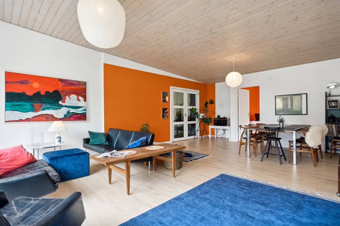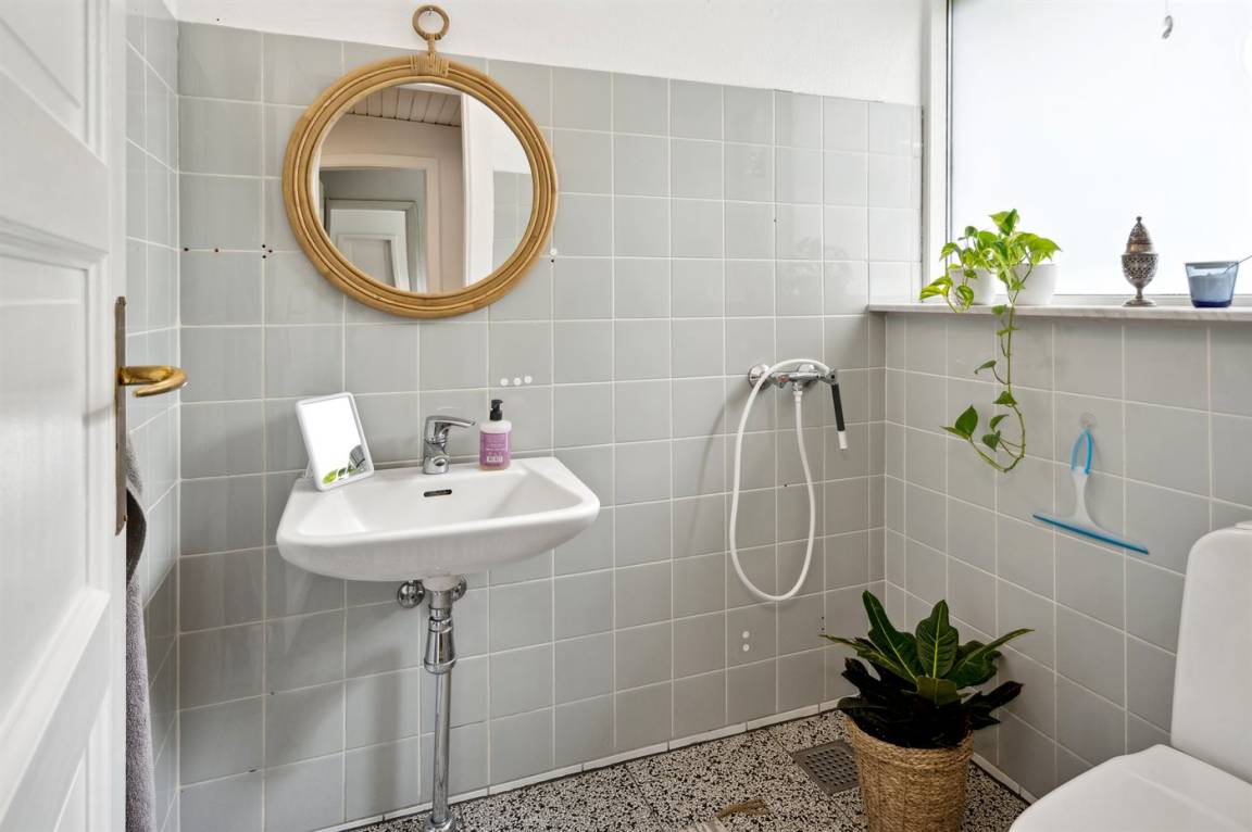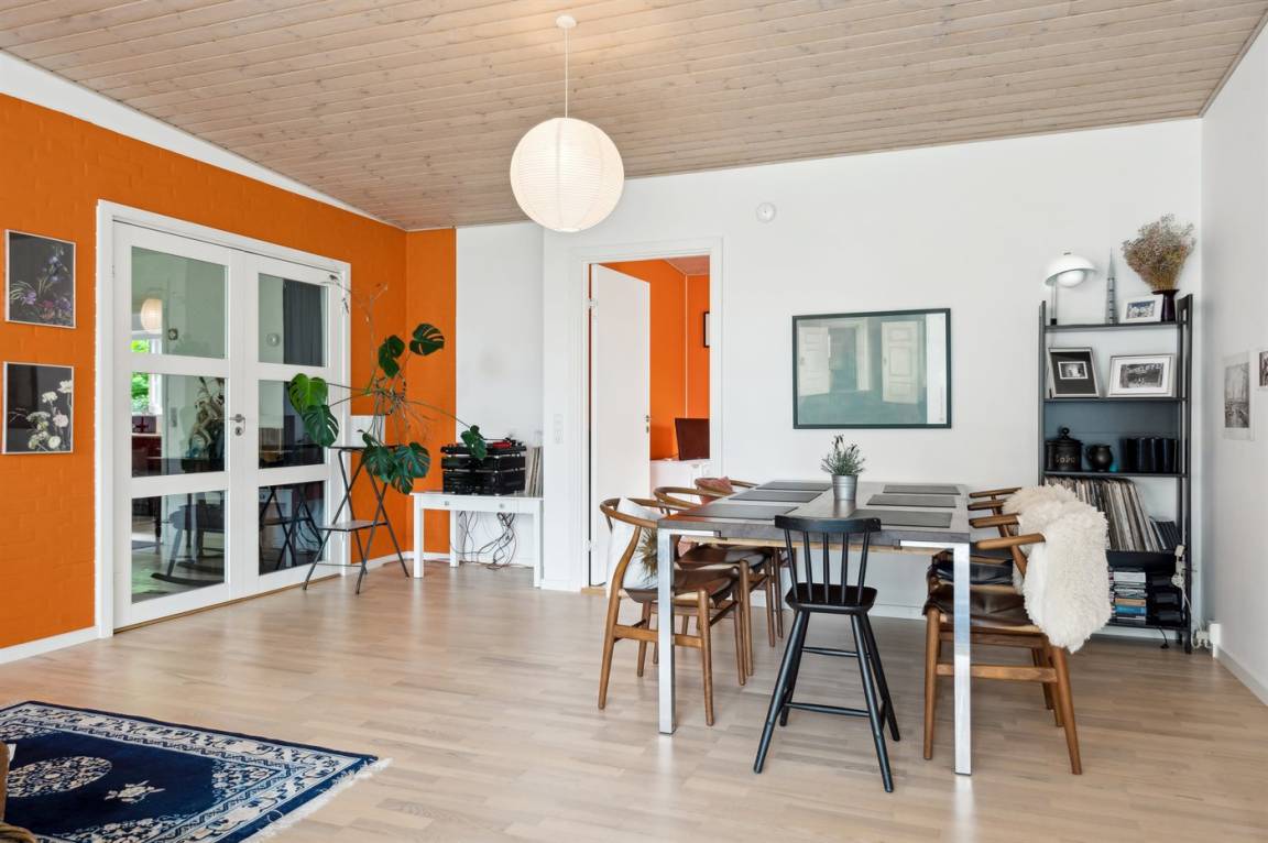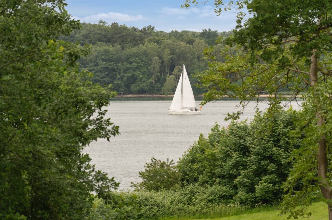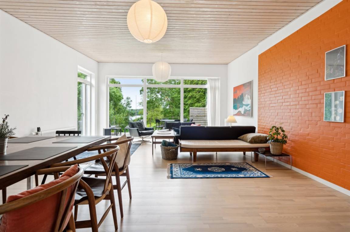 Das Grundstück liegt ungestört, und es gibt viel Platz, damit die Kinder sich austoben können. Der Mittelpunkt des Hauses ist das große Wohnzimmer mit direktem Zugang zur fantastischen Terrasse, von der aus man einen sehr schönen Blick auf die Natur und nicht zuletzt auf den Kleinen Belt hat. Die schöne Aussicht kann man auch aus dem gemütlichen Wohnzimmer genießen, wenn das Wetter nicht dazu einlädt, auf der herrlichen Terrasse mit einer Tasse Kaffee zu sitzen.