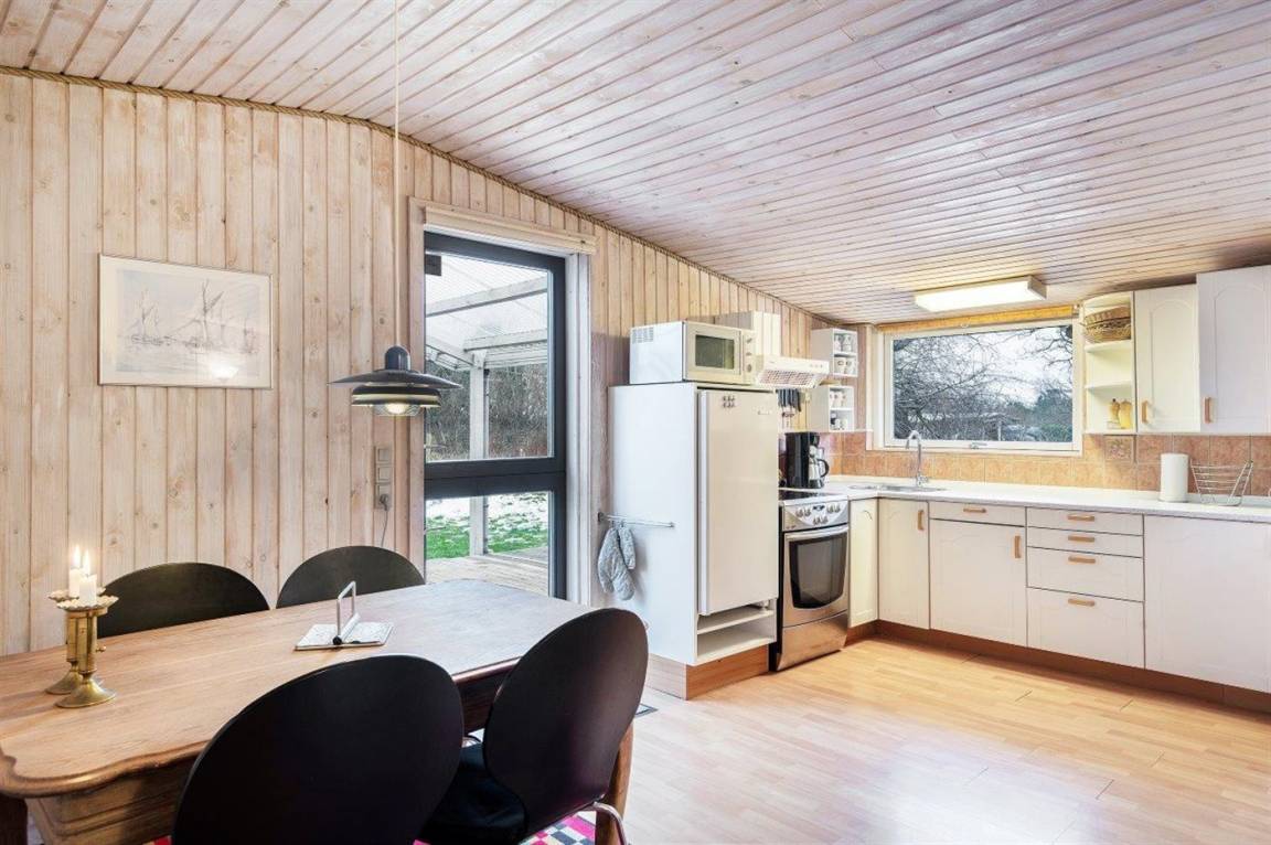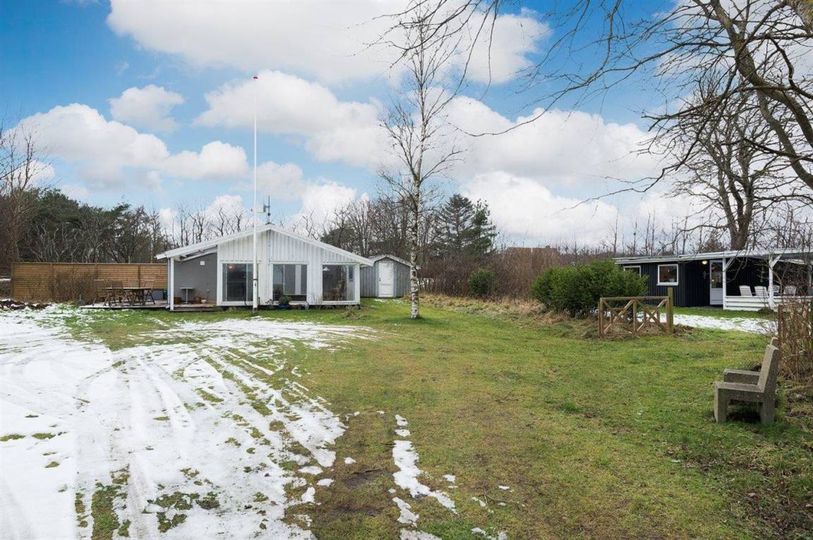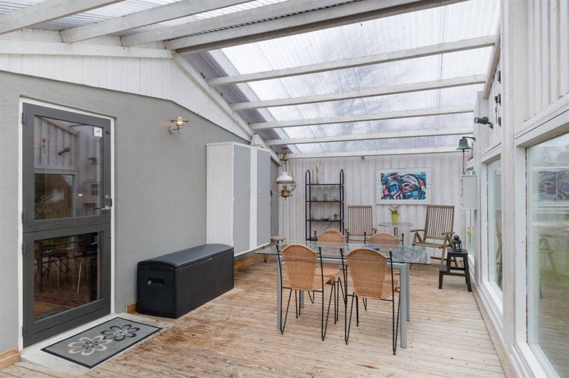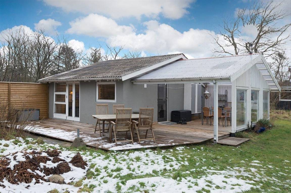 Gemütliches kleines Ferienhaus, welches zurückgezogen auf einem teilweise geschlossenen Grundstück liegt, nahe an Wasser und kinderfreundlichem Badestrand. Zum Ferienhaus gehört eine schöne und fast ganz geschlossene und überdachte Terrasse mit großen Fenstern zum Garten hin, die bei allem Wetter genutzt werden kann.