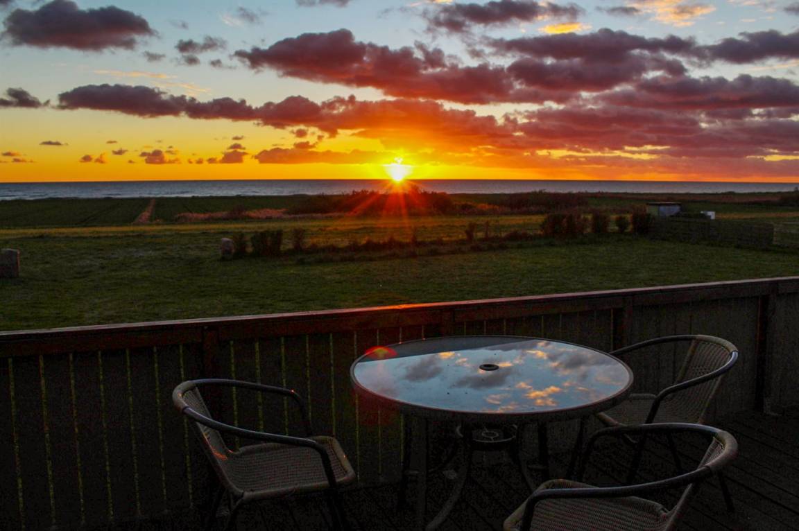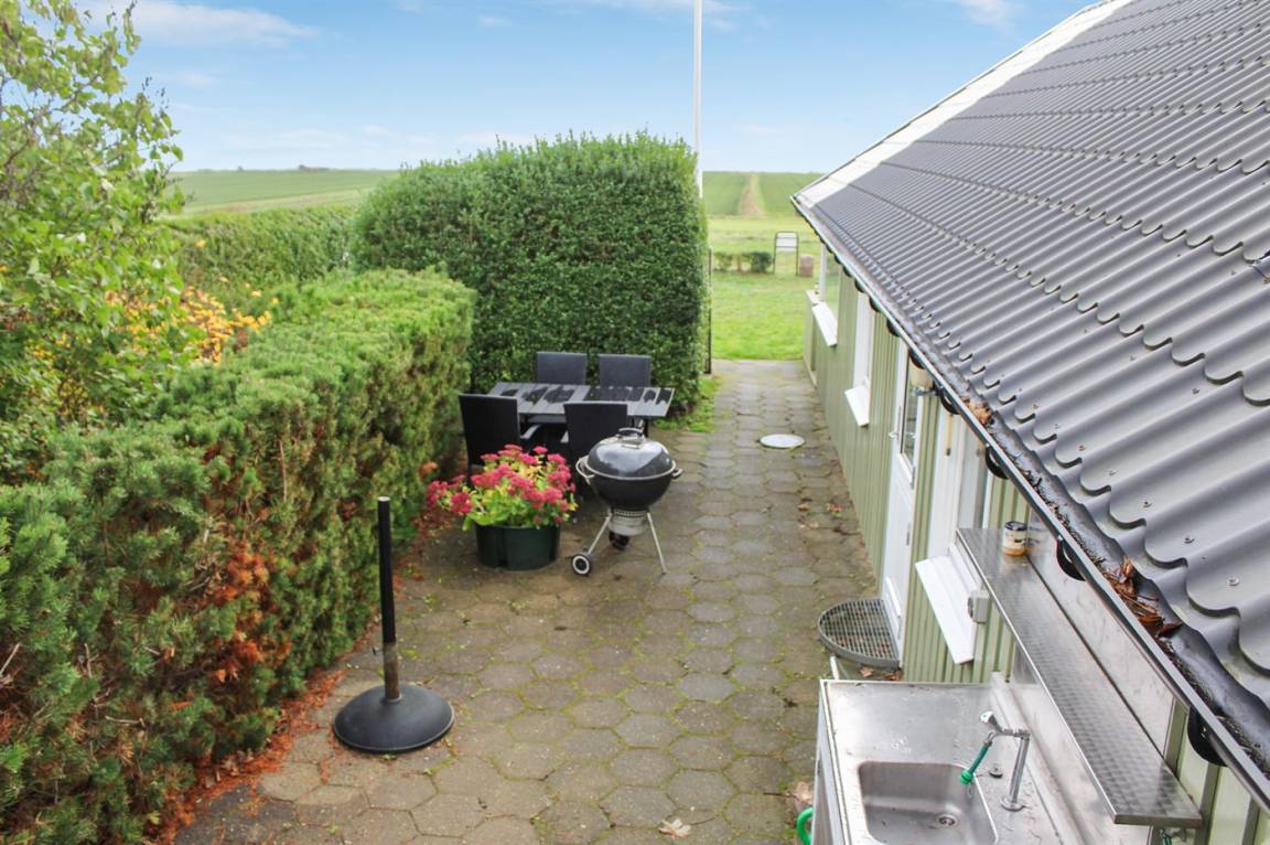 Ein gemütliches, kleines Ferienhaus direkt am Meer mit Meeresblick und eine zum Teil überdachte Terrasse, mit Gartenmöbeln. Auf dem Grundstück liegt ein Gästehaus, das mit Doppelbett und Etagenbett eingerichtet ist.