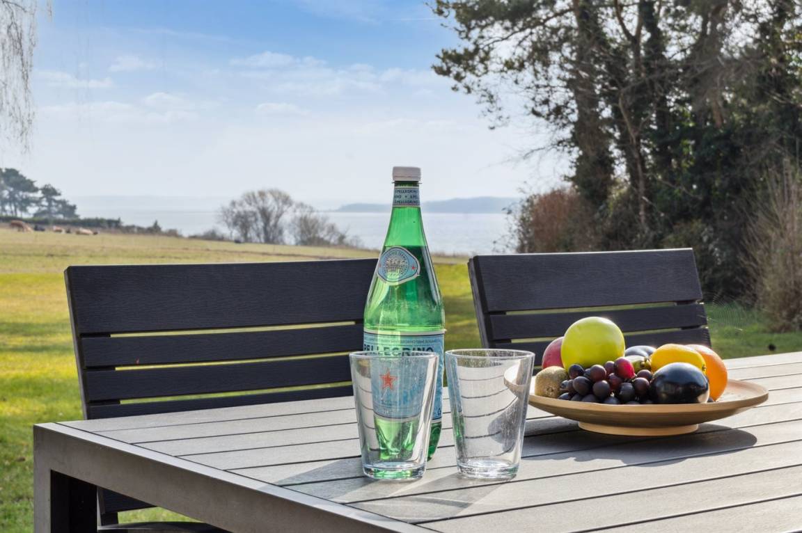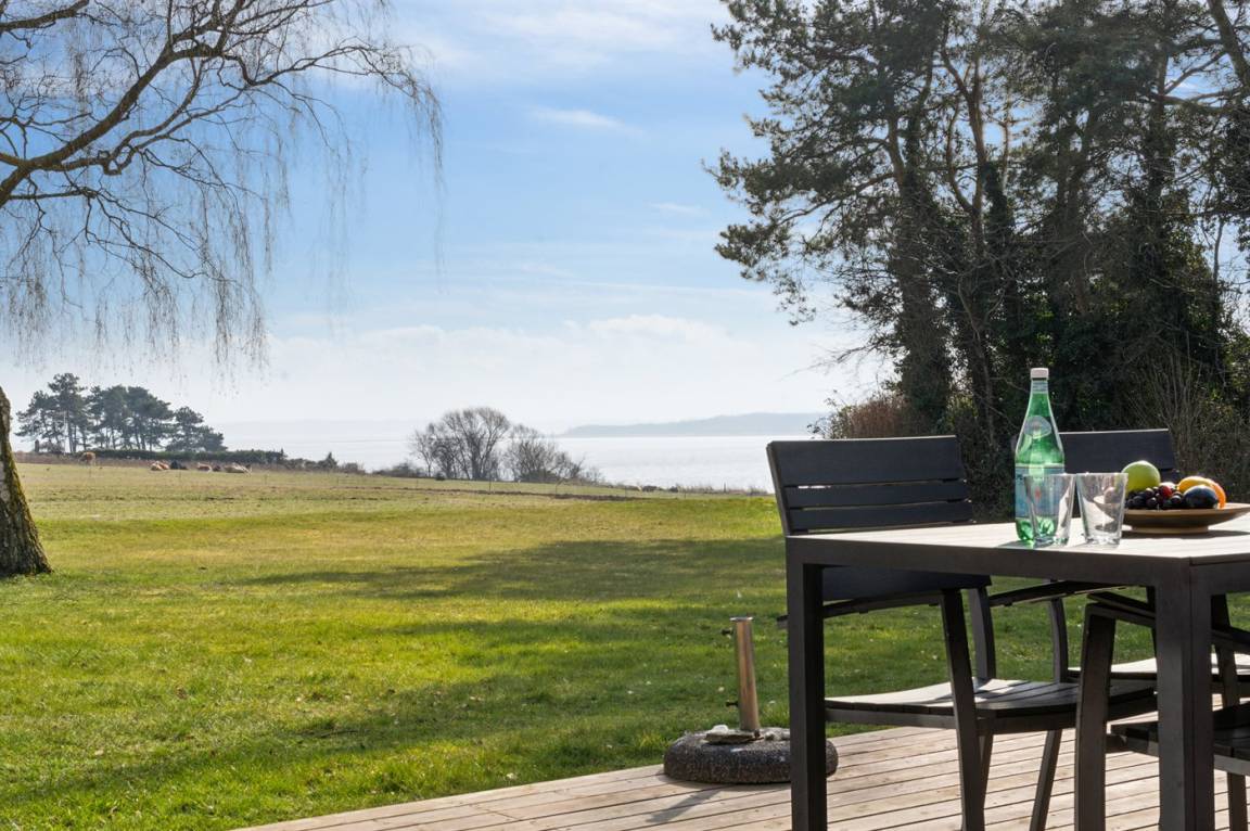 Ferienhaus in Kregme mit Blick über den Fjord und Felder. Genieße die herrliche Aussicht von der Terrasse und nutze den Garten für Outdoor-Aktivitäten.