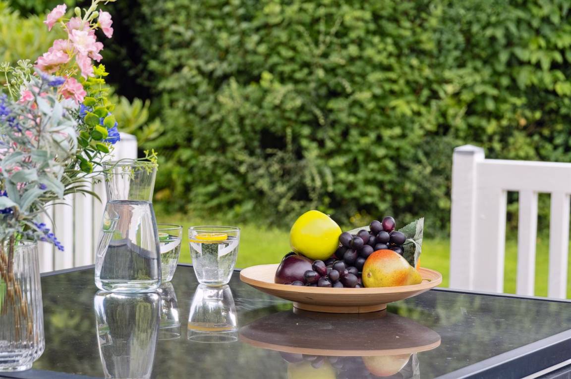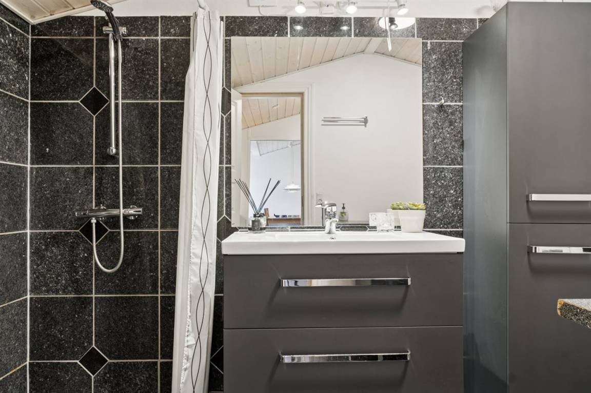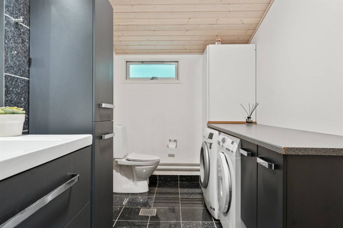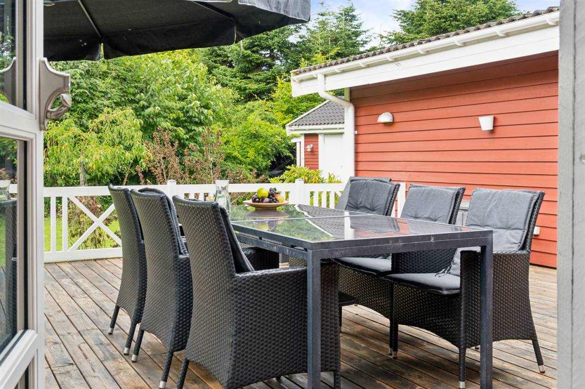 DraußenDie Ferienunterkunft liegt auf einem 1175 m² großen Gartengrundstück. Die Entfernung zum Meer beträgt 9000 m. Die Entfernung zum Fjord beträgt 400 m. Die Entfernung zu einem See beträgt 1500 m. Die nächste Einkaufsmöglichkeit liegt 900 m entfernt. Es steht ein offenes Terrassenareal zur Verfügung. Es steht ein Grill zur Verfügung. Parkplatz auf dem Grundstück.