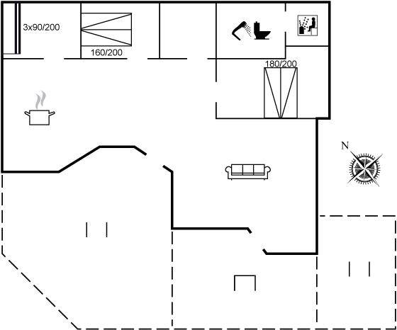SchlafverhältnisseDie Schlafplätze verteilen sich auf 3 Schlafräume. 4 Schlafplätze in Doppelbetten. 3 Schlafplätze in Etagenbetten. Ferner steht ein Kinderbett zur Verfügung.
