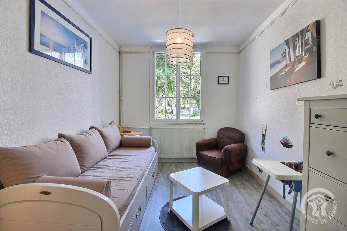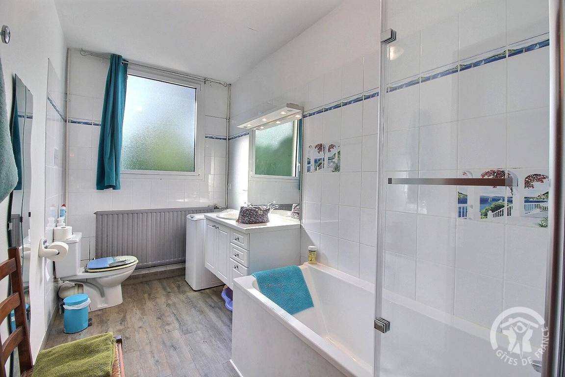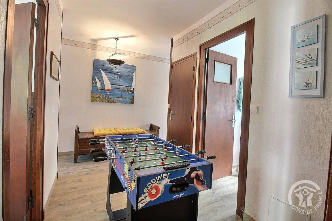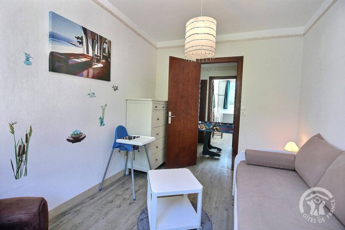 - ein Schlafzimmer mit 2 Einzelbetten. 90x190 (Les Bigorneaux) mit Zugang zu einem weiteren Schlafzimmer mit 1 Doppelbett. 140x190 (Delfine),