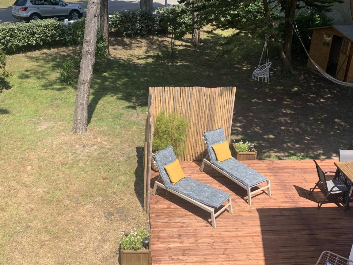 Ihre Ferienwohnung umfasst im Erdgeschoss: Wohnzimmer mit Einbauküche, Badezimmer (Dusche) und separater Toilette, Flur mit direktem Zugang zur Terrasse. Obergeschoss: 3 Schlafzimmer: 1 Schlafzimmer (1 160x200-Bett) mit eigenem Bad (Badewanne), 1 Schlafzimmer (2 90x190-Betten) und ein kleines Babyzimmer (Holzbett), separates WC. Ihr kleines Haustier ist willkommen, der Zugang zum ersten Stock ist jedoch nicht gestattet, da die Treppe mit Seegras bedeckt ist. Terrasse von 40 m² und erhöhtes und geschlossenes Grundstück von 900 m² mit der Möglichkeit, auf dem Giebel im Inneren zu parken Grundstück oder draußen vor dem Haus. Gartenhaus mit der Möglichkeit zum Abstellen Ihrer Fahrräder und Strandausrüstung.