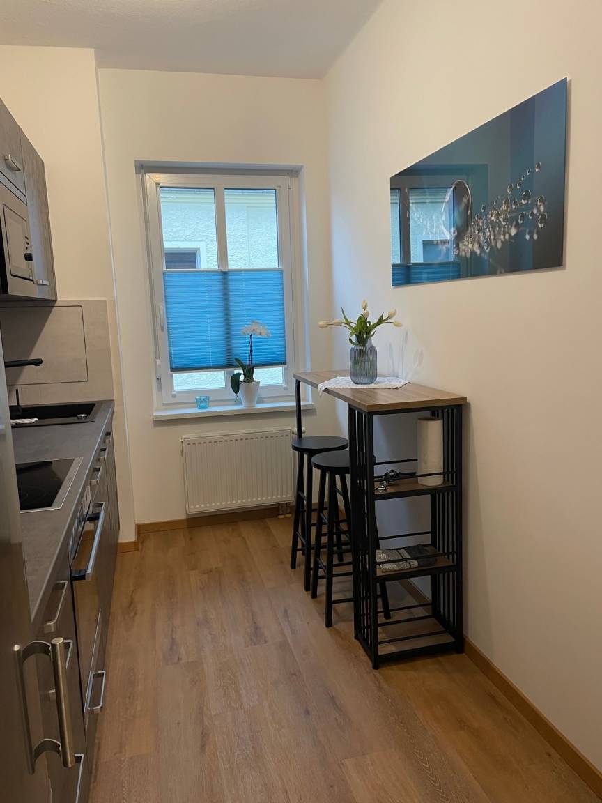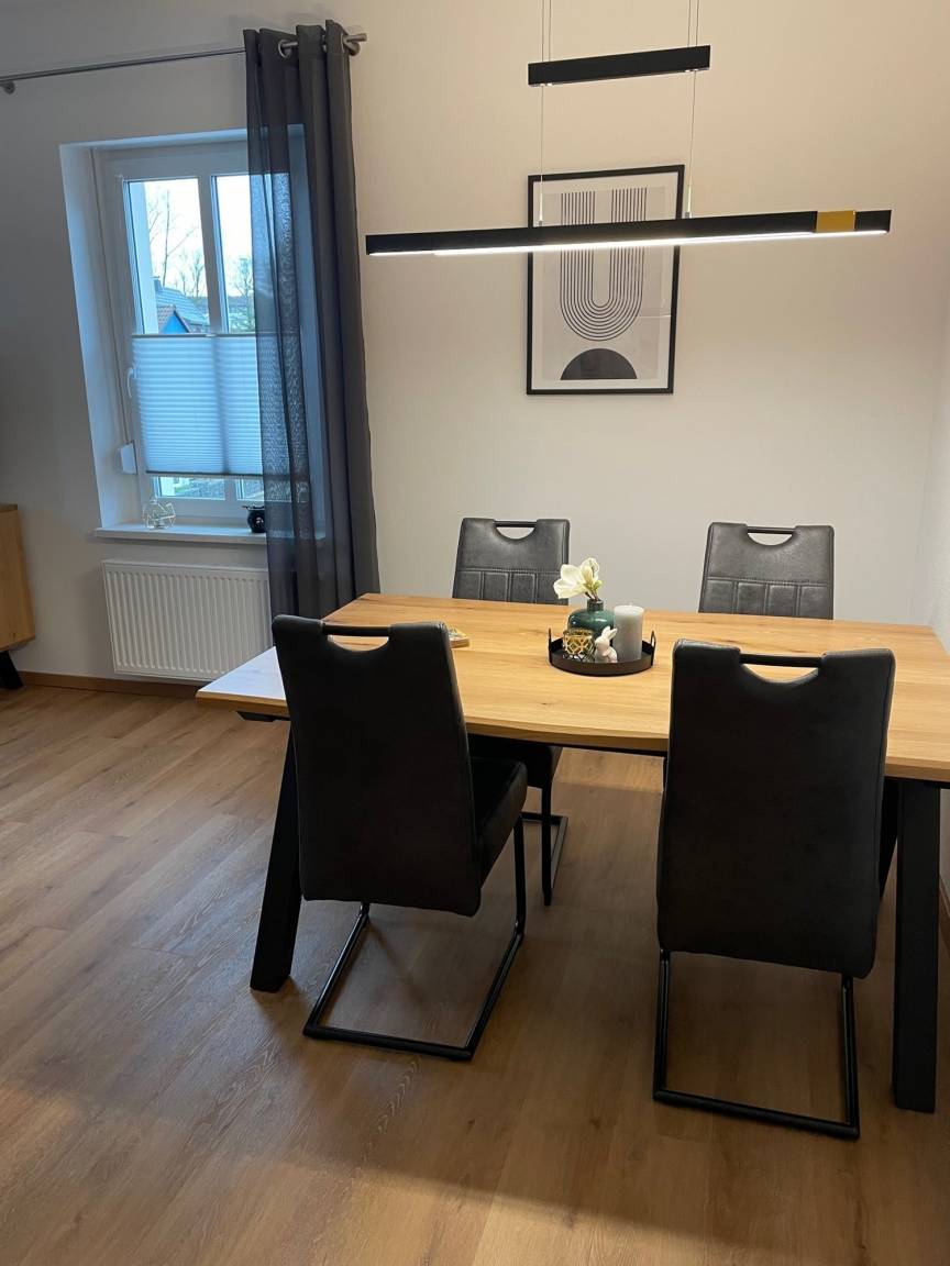 Die hochwertig renovierte und liebevoll eingerichtete Ferienwohnung - mit Privatparkplatz und kostenfreiem WLAN - befindet sich im 1. Obergeschoss und verfügt über einen großen Balkon mit Ausblick in den Garten.