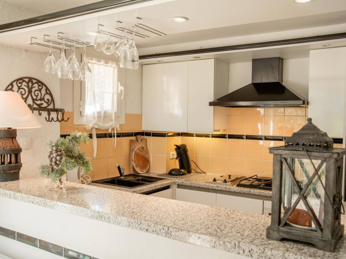 Layout : Parterre: offene Küche mit Bar, Wasserkocher, Wasserkocher, Toaster, Kochherd(4 Kochplatten, Gas), Dunstabzugshaube, Kaffeemaschine(pads), Backofen, Mikrowelle, Geschirrspüler, Kühl-/Gefrierkombination, Zitruspresse , Wohn/Esszimmer mit TV(Flatscreen, Satellit, internationale TV-Kanäle), Esstisch(4 Personen), Kamin, Sitzecke, CD-Spieler, Stereoanlage