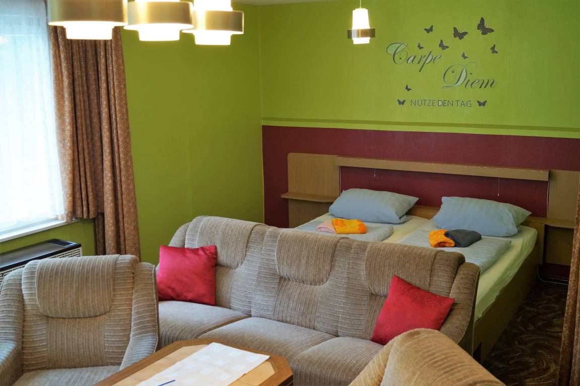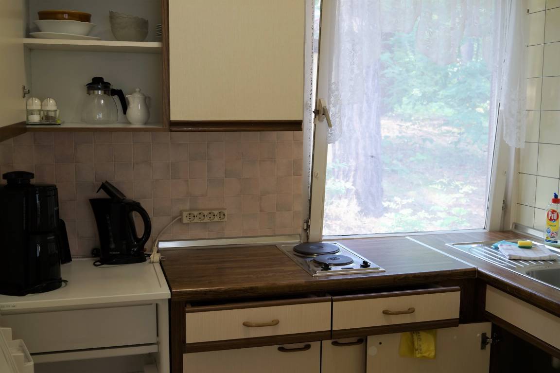 Doppelhaus Typ 3 ist eine Doppelhaushälfte für bis zu 5 Pers. (3Erw.+1Kind+1Kleinkind). Die Nutzfläche beträgt ca.45m² incl. einer mit Gartenmöbeln ausgestatteten Terrasse, einem trennbaren Wohnschlafraum mit Doppelbett, einem Schlafraum mit Etagenbett & Kinderbett, einer komplett eingerichteten Küche mit Elektrokochplatten, Kühlschrank, Spüle, Kaffeemaschine etc. sowie einem Bad mit Dusche & WC.