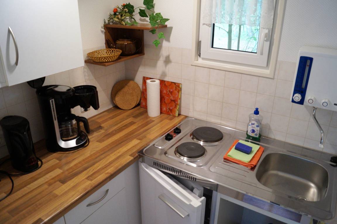 Bungalow Typ 2 ist ein komplett renoviertes Ferienhaus für bis zu 3 Personen (3 Erw.). Die Nutzfläche beträgt mit ca. 43m² incl. einer mit Gartenmöbeln ausgestatteten Terrasse, einem Wohnraum sowie zwei Schlafräumen, einem mit Doppelbett und einem mit einem Bett, einer komplett eingerichteten Kleinküche mit Elektrokochplatten, Kühlschrank, Spüle, Kaffeemaschine etc. sowie einem Bad mit Dusche & WC. Teilweise sind bei diesem Typ keine Haustiere erlaubt, daher ist eine Buchung von Haustieren nur auf Anfrage möglich!
