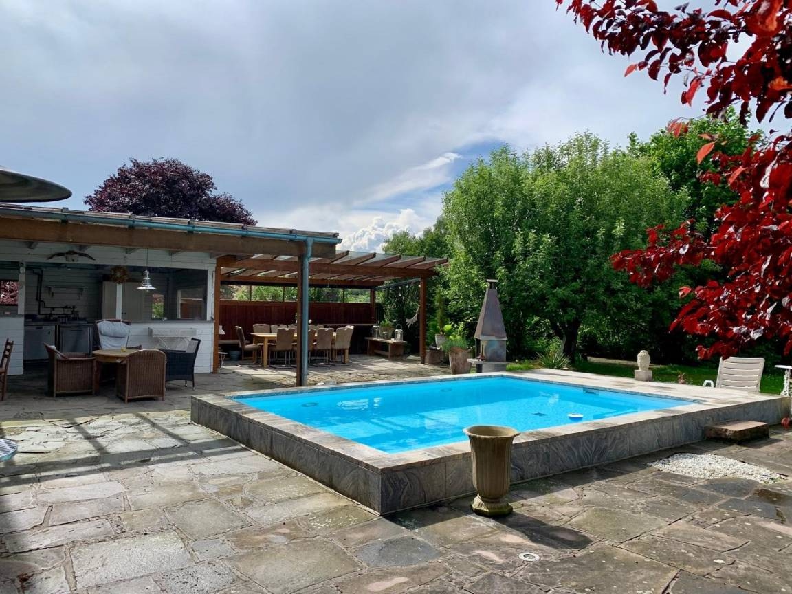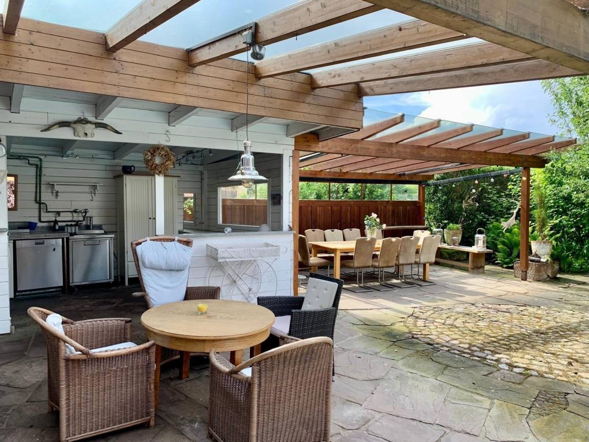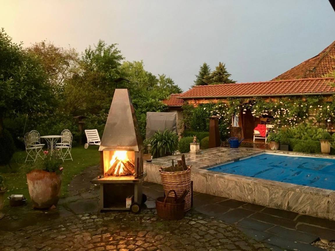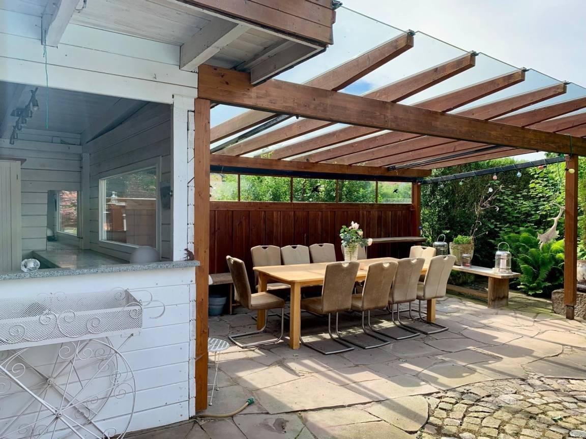 Genießen Sie erholsame Stunden im privaten Sommer-Pool oder lassen Sie die Seele im urigen Saunahaus baumeln. Der idyllische, absolut private Garten lädt mit seinen schönen Terrassen und einem Außenkamin zu entspannten Abenden unter freiem Himmel ein. Durch große Überdachungen ist das Gartenvergnügen ganz wetterunabhängig.